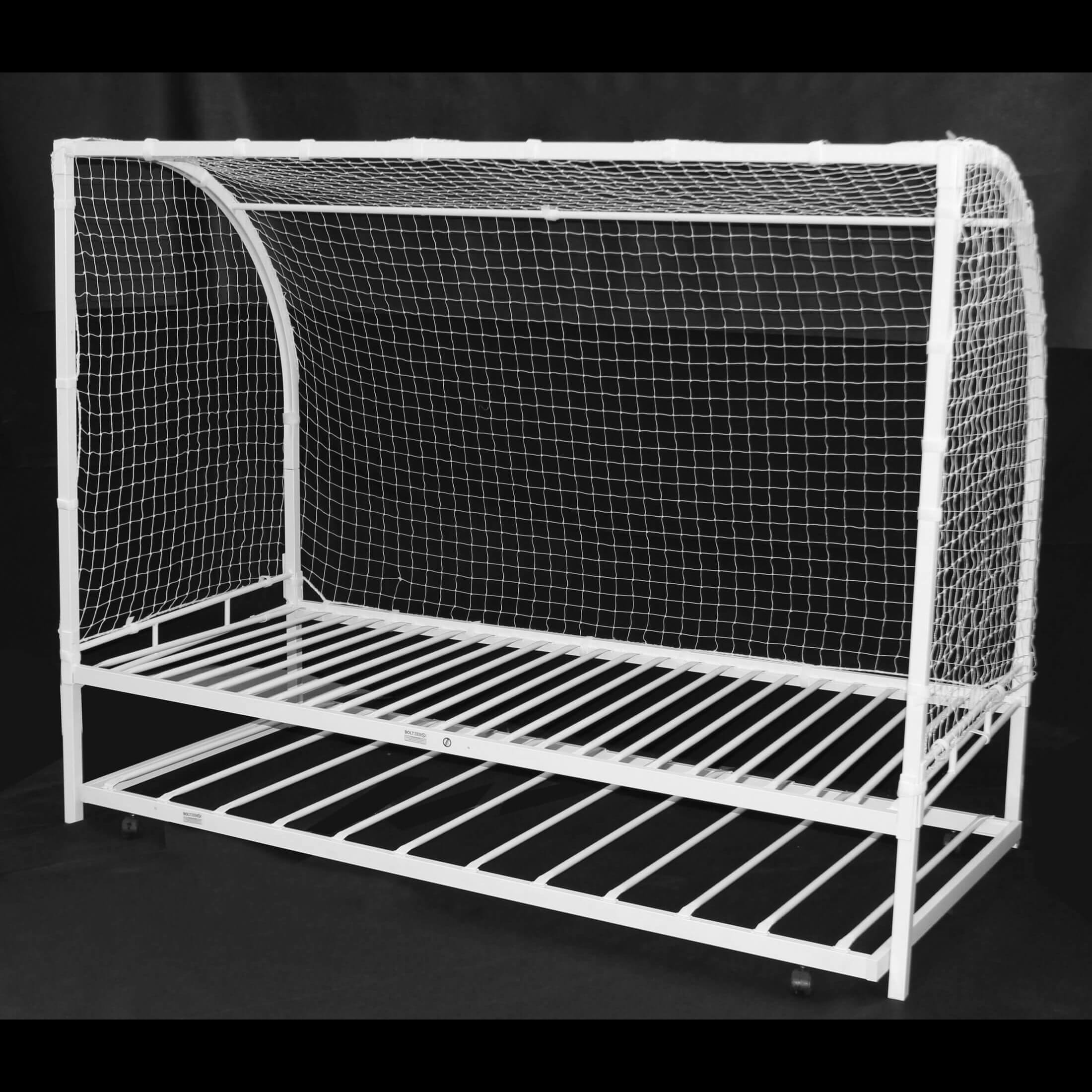 Football Metal Bed Single with Trundle – White