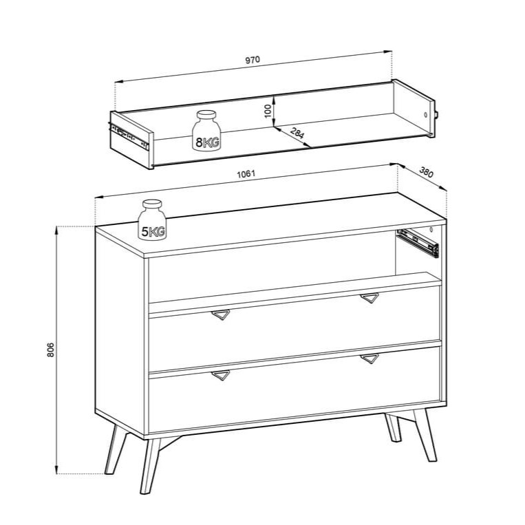 - Dimensions: W106cm x H80cm x D38cm