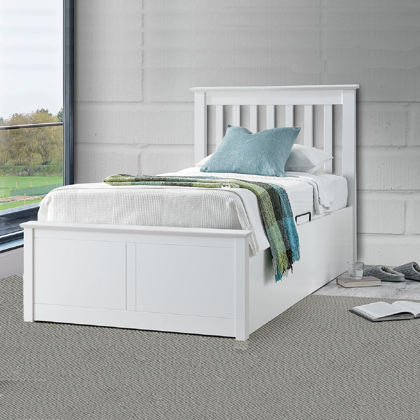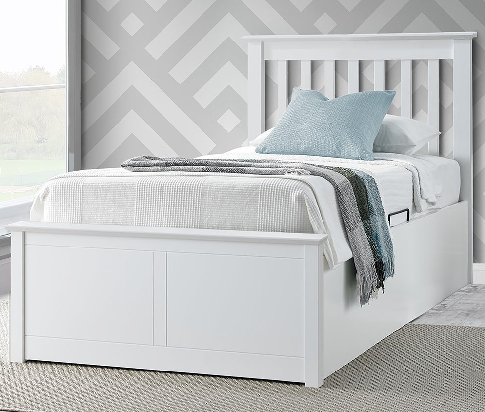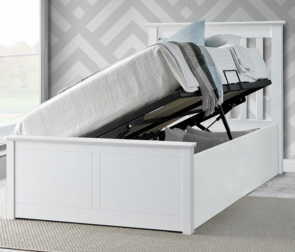 Francis White Wooden Ottoman Bed – Single | Gas-Lift Storage & Adaptable Side Opening
