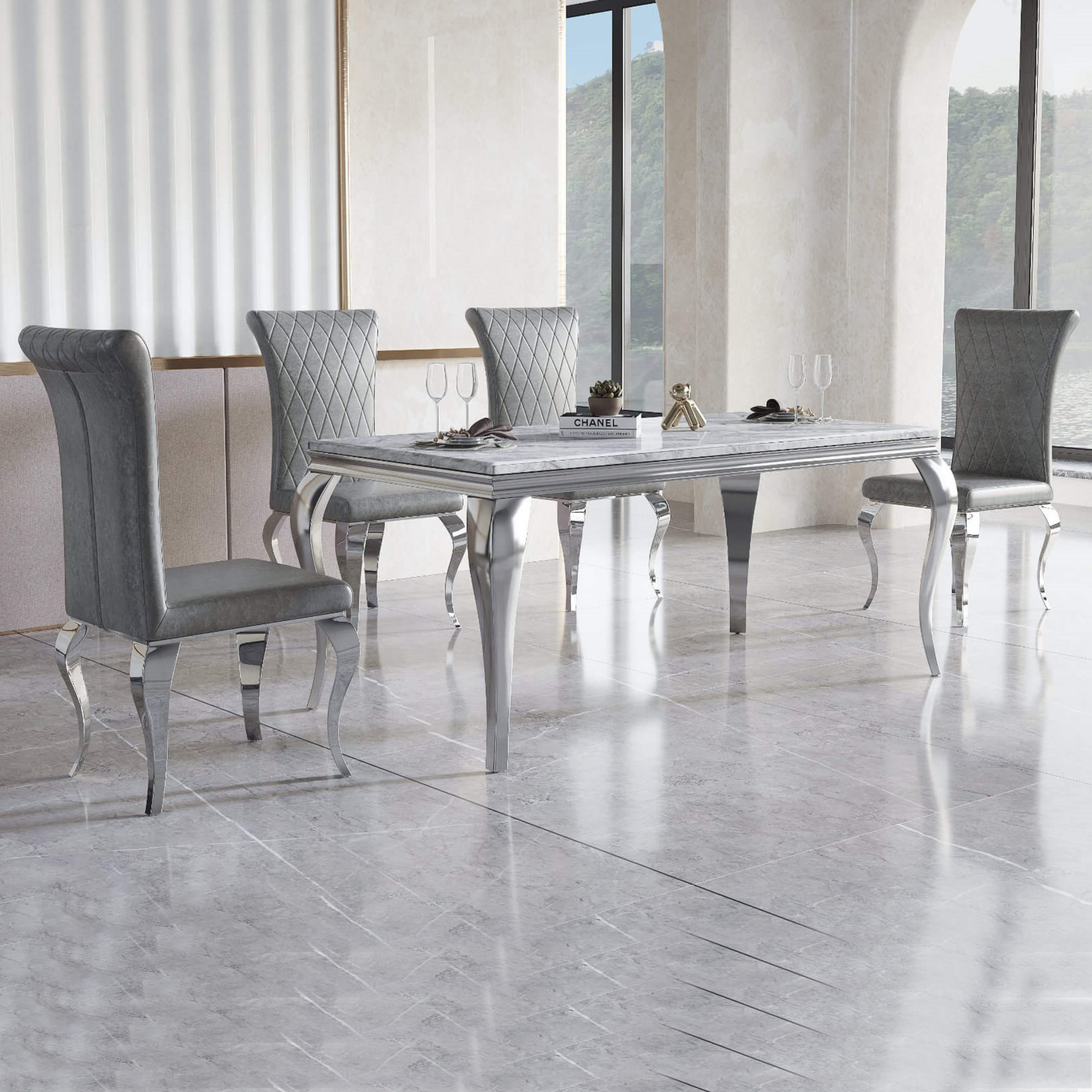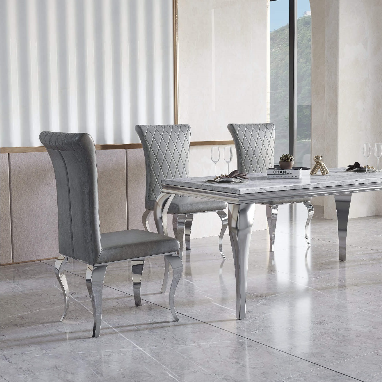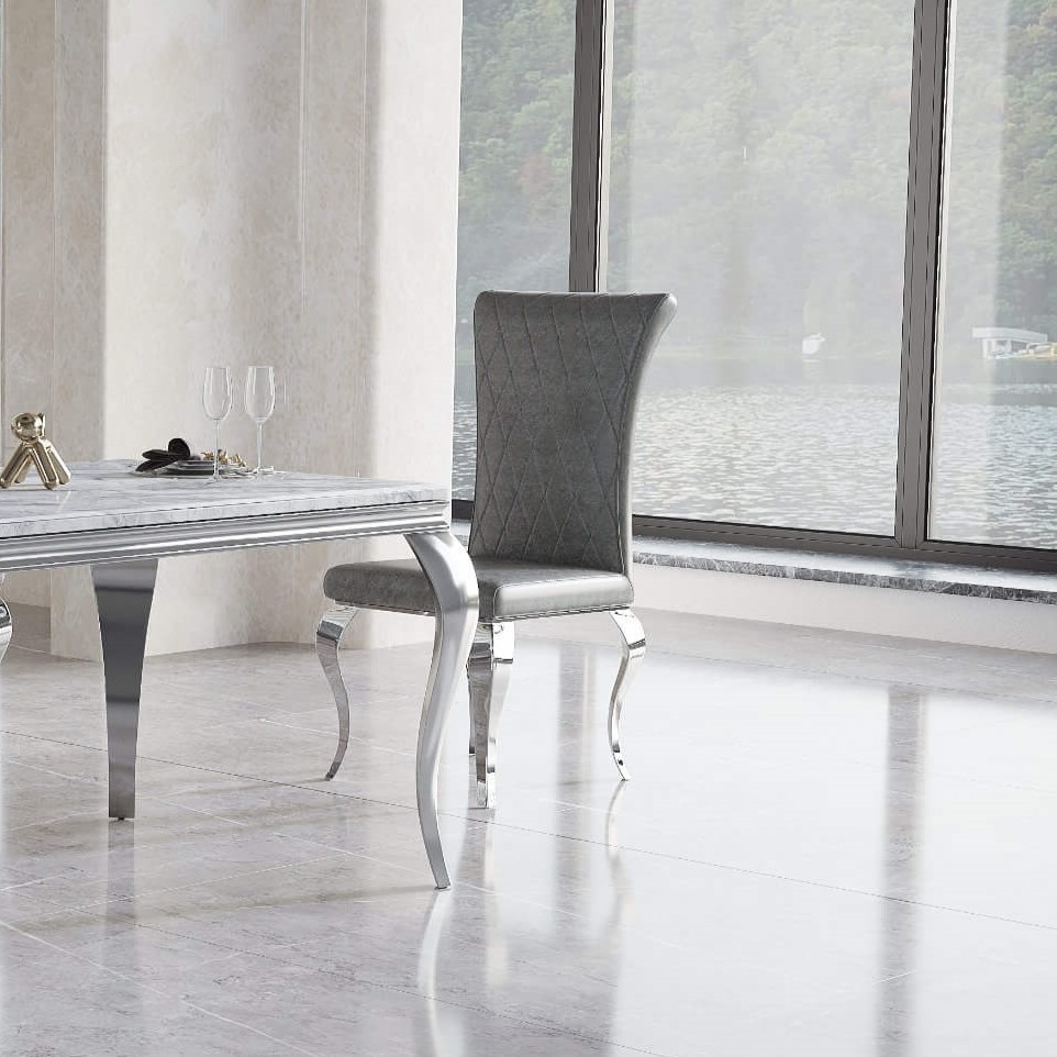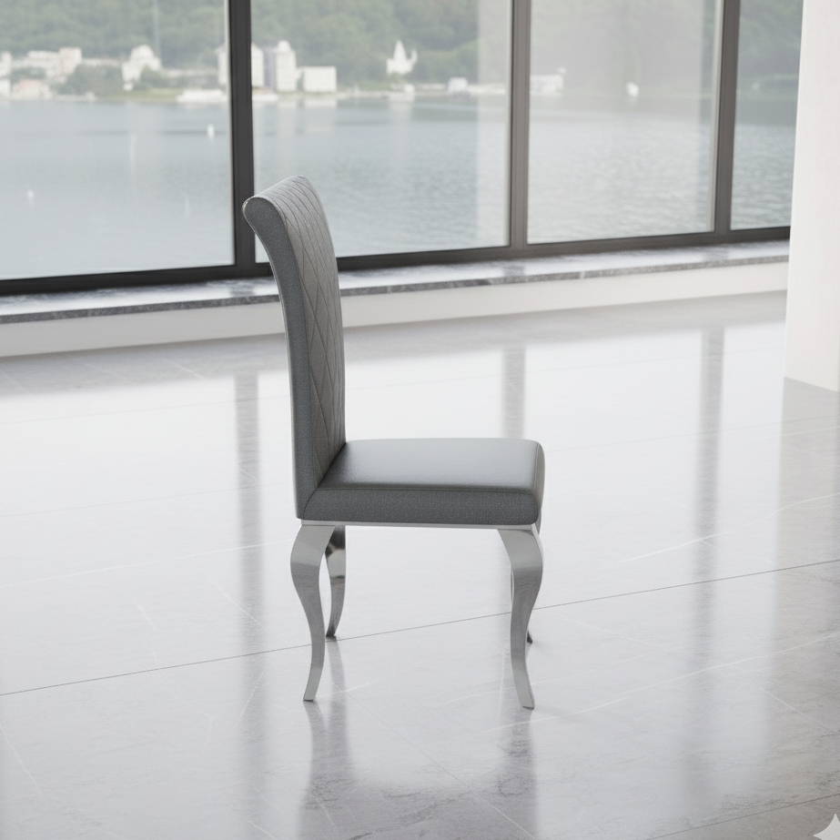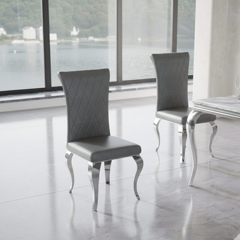 Grande PU Dining Chair – Grey with Stainless Steel Legs | Sleek Modern Seating (Set of 2)