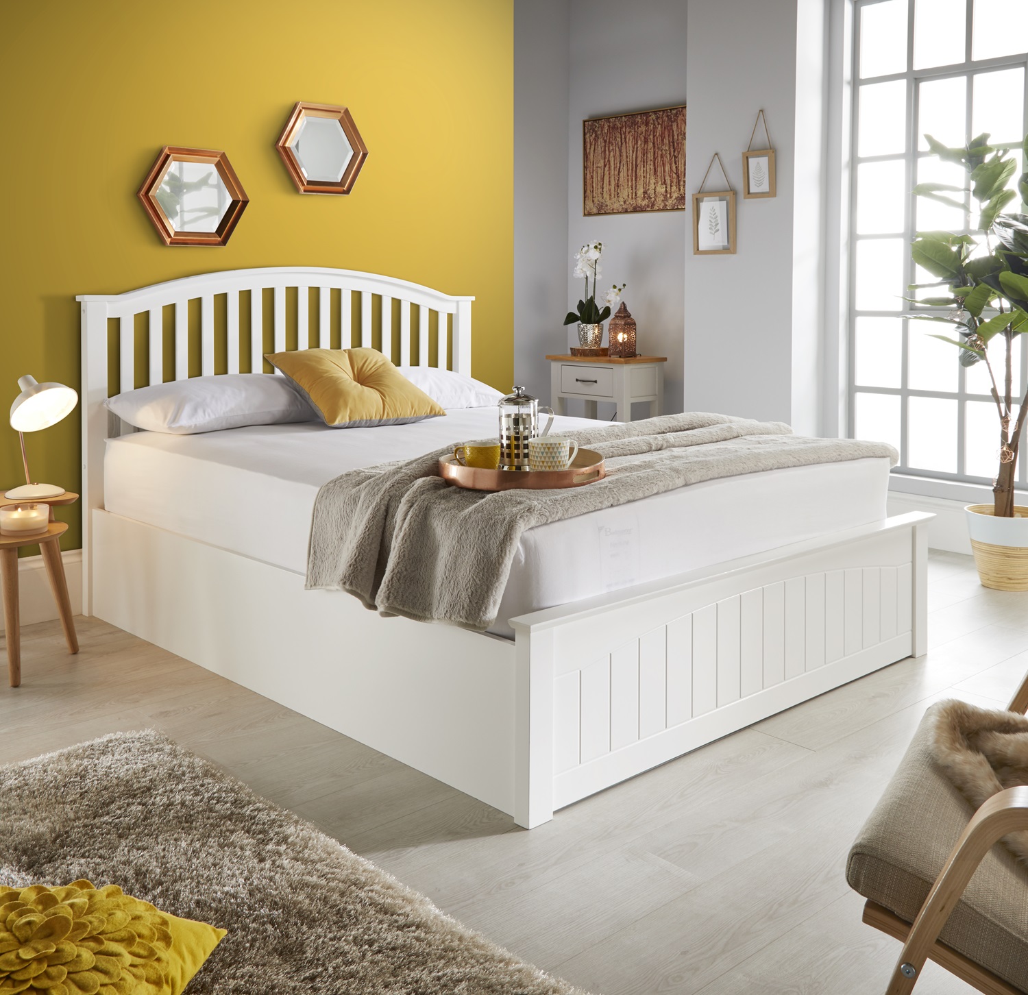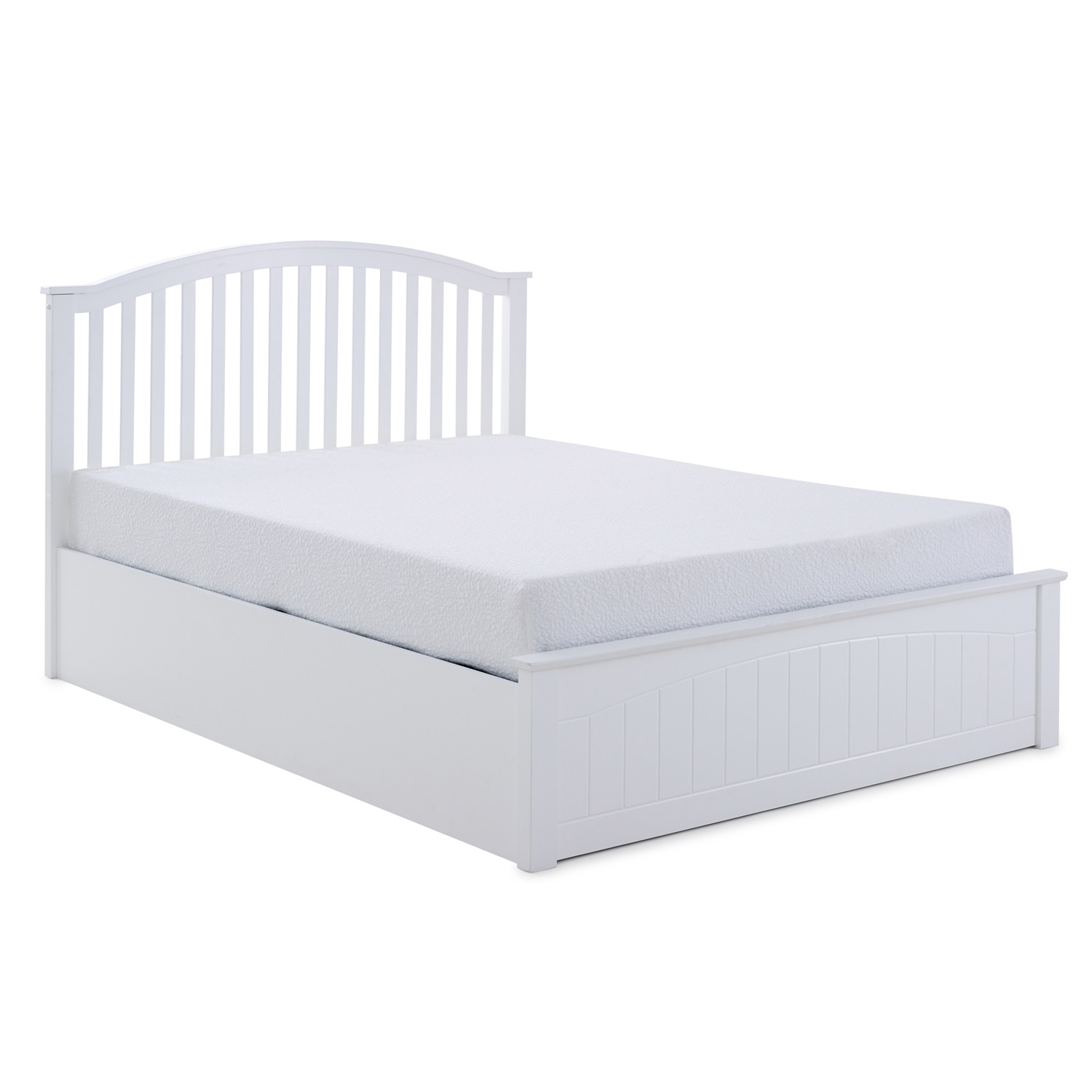 Stylish and amazingly practical, the Grayson Ottoman bed offers elegance and practicality for any bedroom setting. The curved, slatted headboard and low foot end mean this bed can go with most styles of decor. This is an exemplary ottoman bed designed with powerful hydraulic pistons that grant easy access to the spacious storage hidden beneath. The storage is split into three sections and is accessible from the footend. A very solid and durable bed.