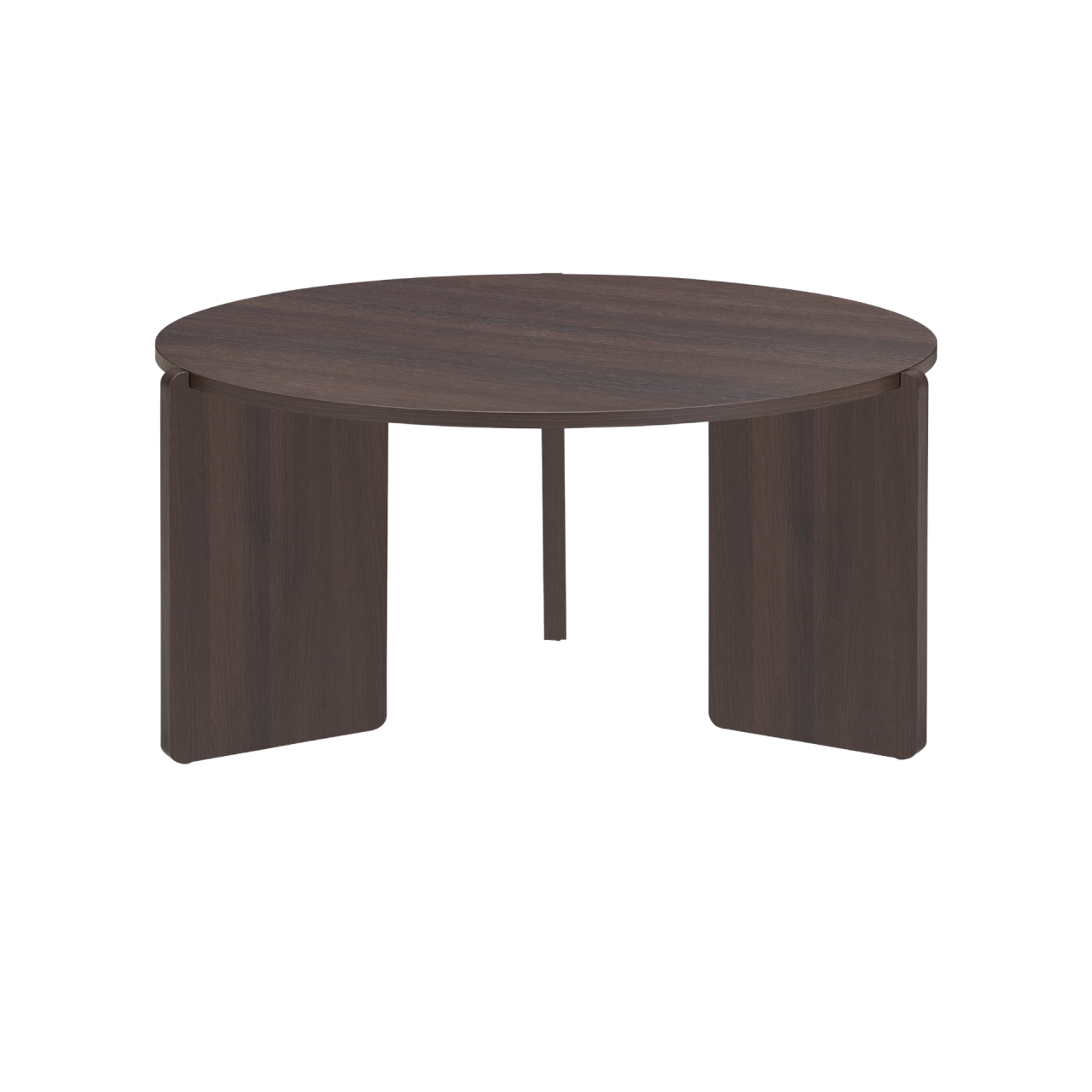 The Halo Coffee Table features a round top with woodgrain‑effect sides and three rounded‑corner legs that extend beyond the tabletop for a layered, sculptural look. Durable, scratch‑resistant and ideal for modern living rooms.