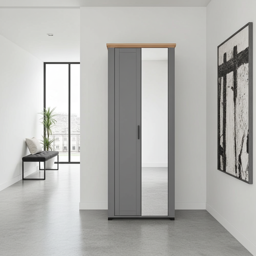 Harwich Mirrored Wardrobe – Graphite Grey & Artisan Oak