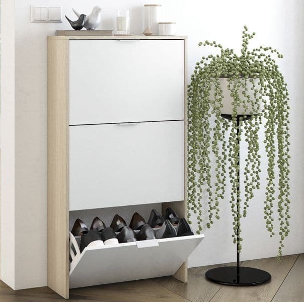Details about Hemel White and Oak Effect Shoe Cabinet