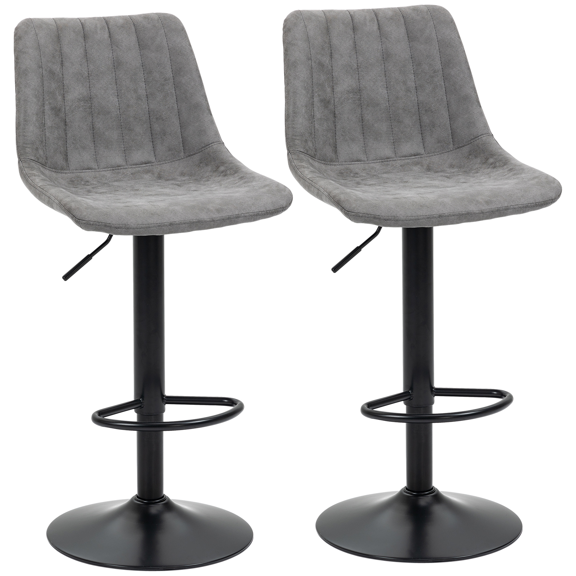 Homcom Adjustable Bar Stools Set of 2 Counter Height Barstools Grey