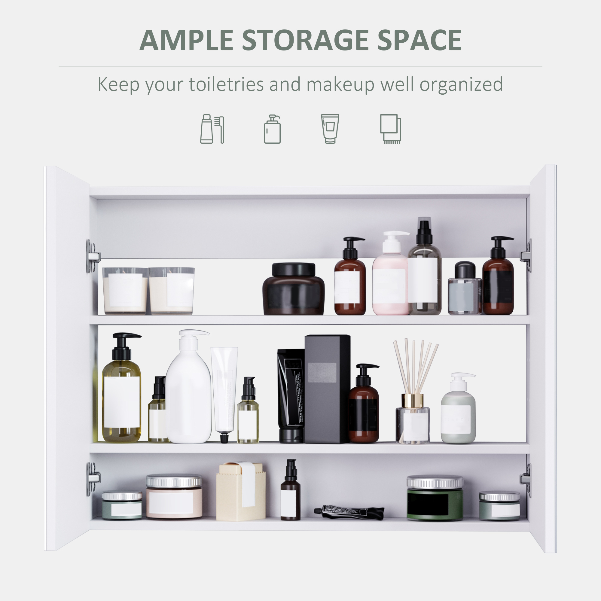 Details about Homcom Double Door Wall Mounted Glass Mirror Cabinet Modern Storage Unit Bathroom Shelf Organiser Waterproof Wooden Frame 80Lx60Hx15D(cm)