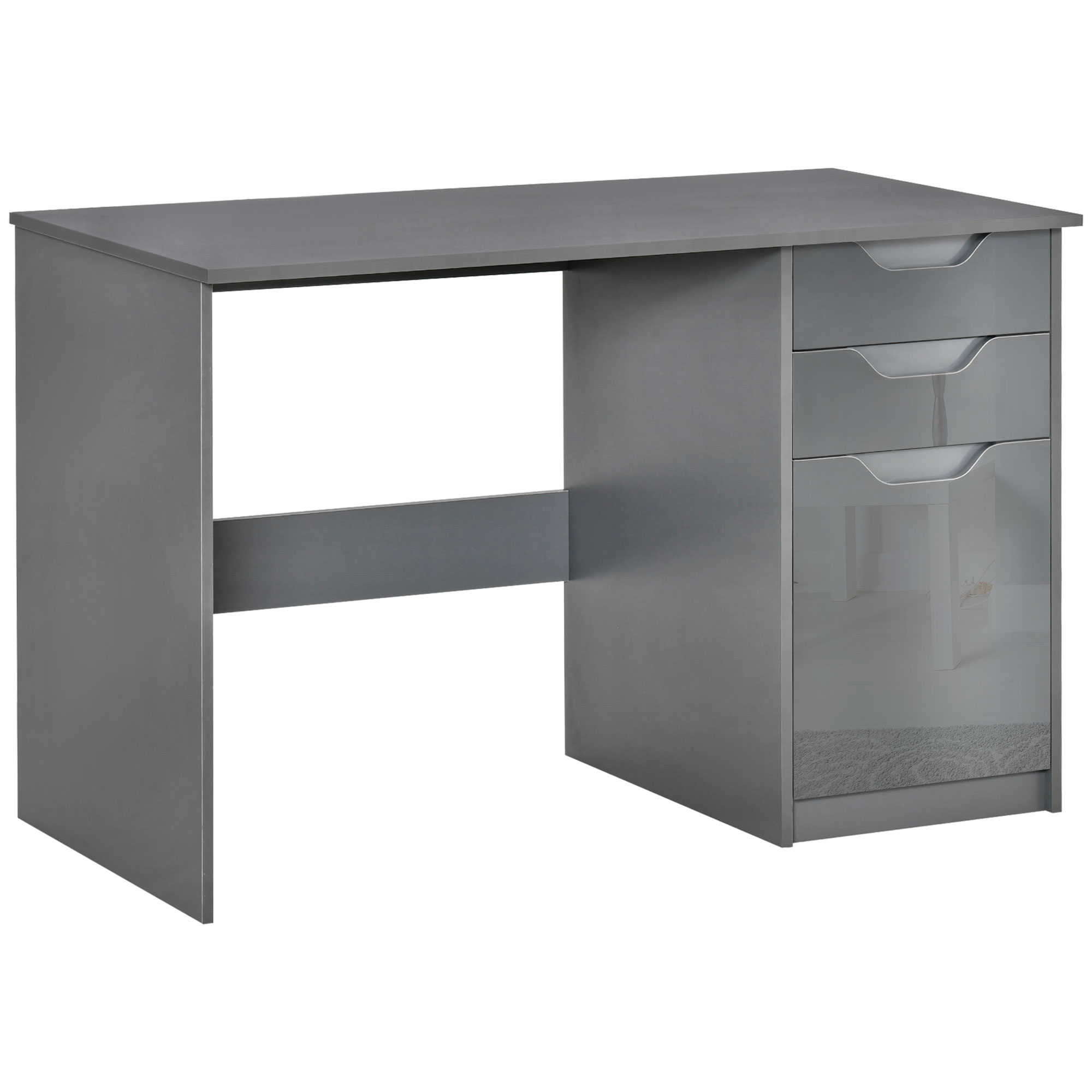 Details about Homcom High Gloss Computer Desk with Drawers, Modern Writing Workstation with Storage Cabinet, PC Study Table for Home, Office, Study, Grey