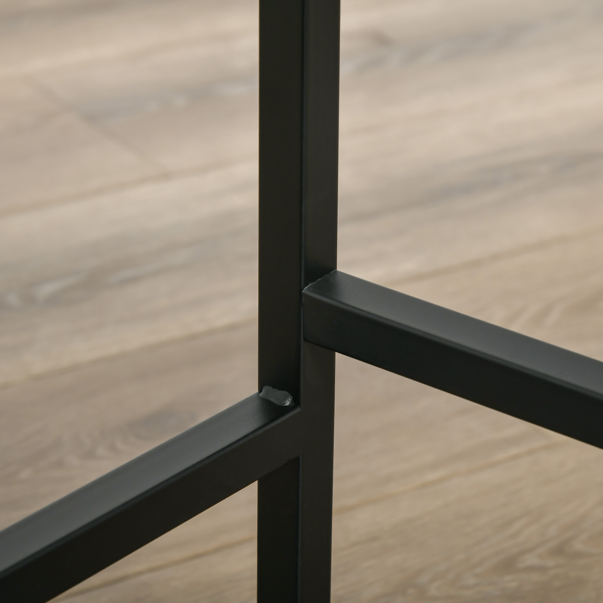 Simple, modern style in the form of a traditional kitchen piece - the humble bar stool. These two industrial-style kitchen stools are great for creating impact wherever they stand. Each frame is made from metal for a strong structure, fitted with a bottom bar to rest your legs comfortably. The seat tops are made from particle board for durability, finished in a suave wood-effect look. The 65cm height makes it idea to pair with higher surfaces, such as kitchen countertops.