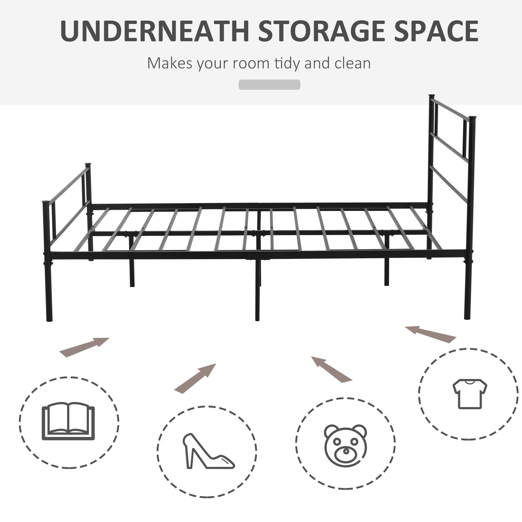 Details about Homcom King Size Metal Bed Frame, Solid Bedstead Base with Headboard and Footboard, Metal Slat Support and Underbed Storage Space, Bedroom Furniture