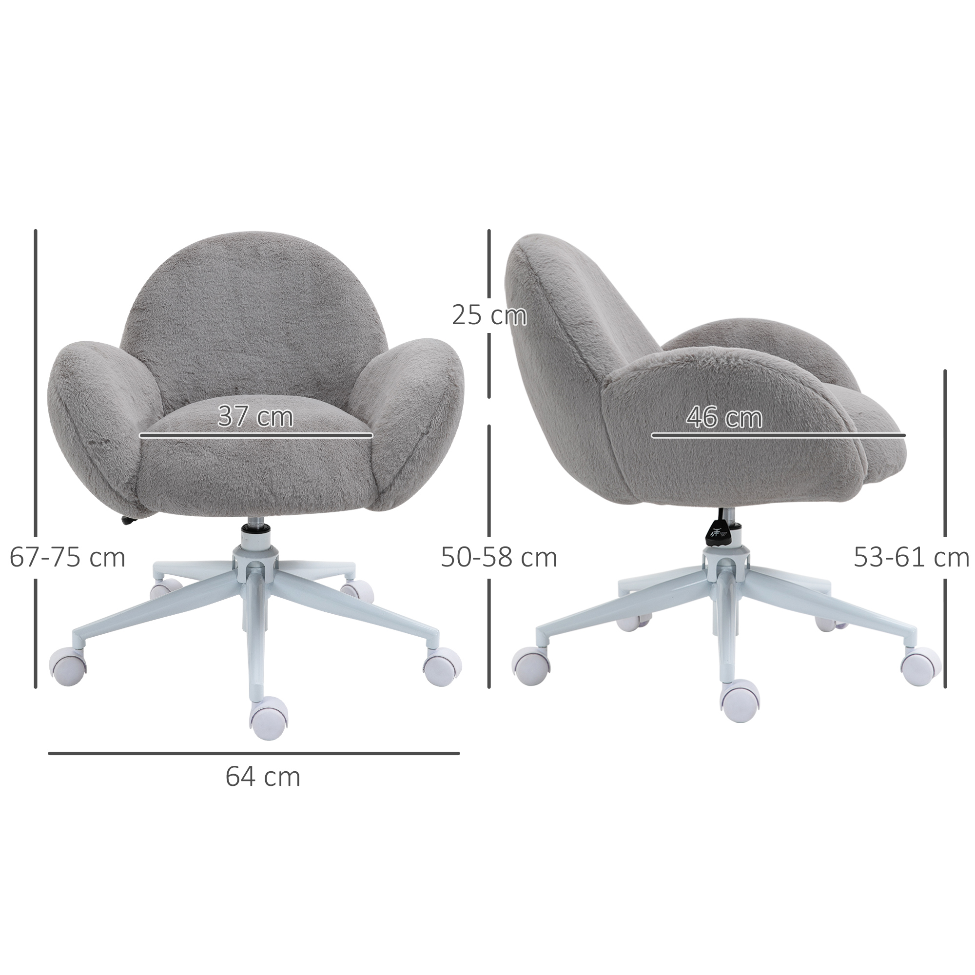 Details about HOMCOM Makeup Vanity Chair, Cute Fluffy Desk Chair with Rolling Wheels for Bedroom Living Room, Grey
