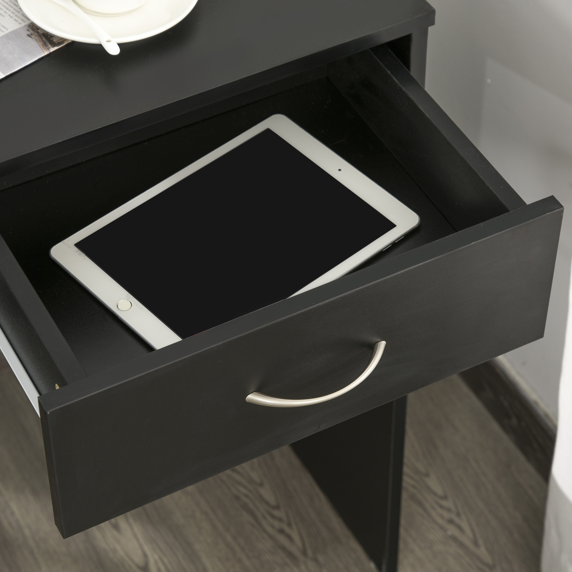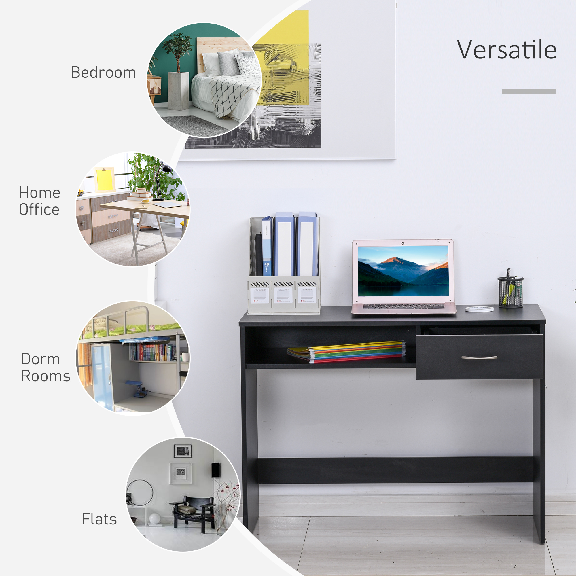 Details about Homcom Modern Computer Work Desk Table Study Shelf Drawer Standing Writing Station Display Stylish Storage Compact Black