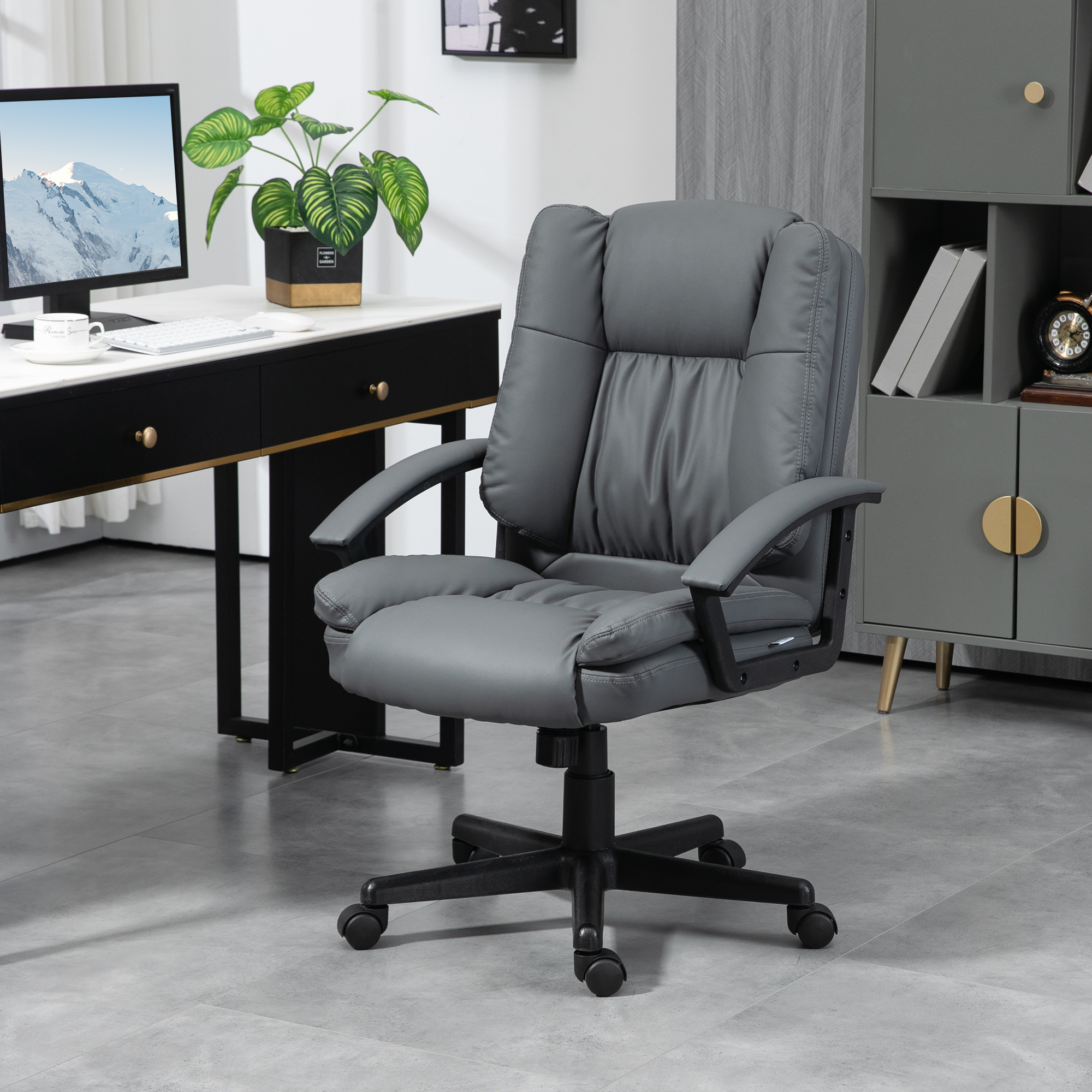 Details about HOMCOM Office Chair, Computer Desk Chair, Mid Back Executive Chair with Adjustable Height and Swivel Rolling Wheels for Home Study, Dark Grey