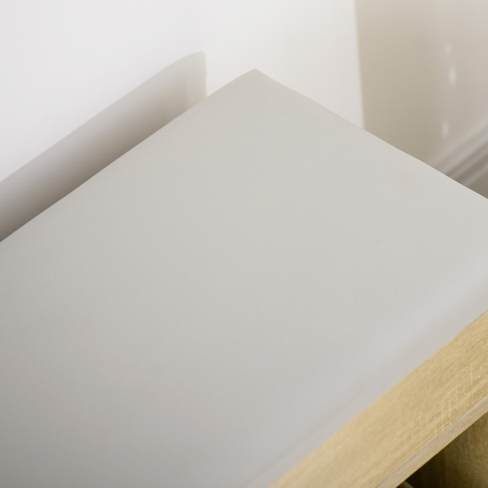 This stylish shoe storage unit from HOMCOM is perfect for all homes. It is crafted from MDF for a sturdy and durable structure, in an oak tone finish for beauty. It features three open compartments: spacious in size for keeping your shoes, with a concealed spot on the top for keeping other bits stored. Thick cushion sits on top, keeping you comfortable as your sit, with side groove handles so you can move it around easily.