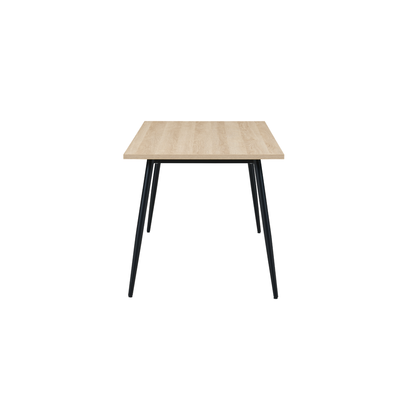 Supporting the tabletop are matt black powder‑coated metal legs that taper outward, creating a clean, architectural silhouette. Each leg includes soft floor protectors, helping prevent marks on hard flooring and adding stability across different surfaces.