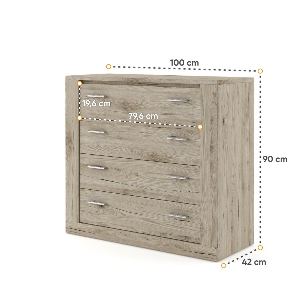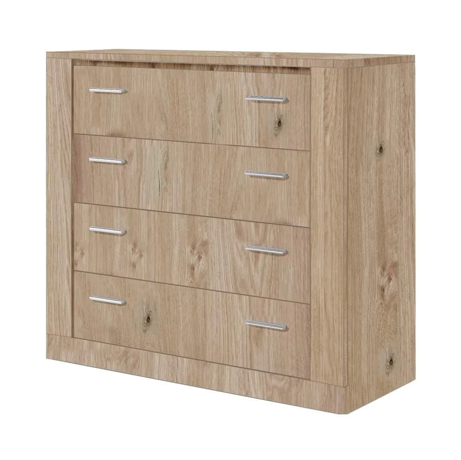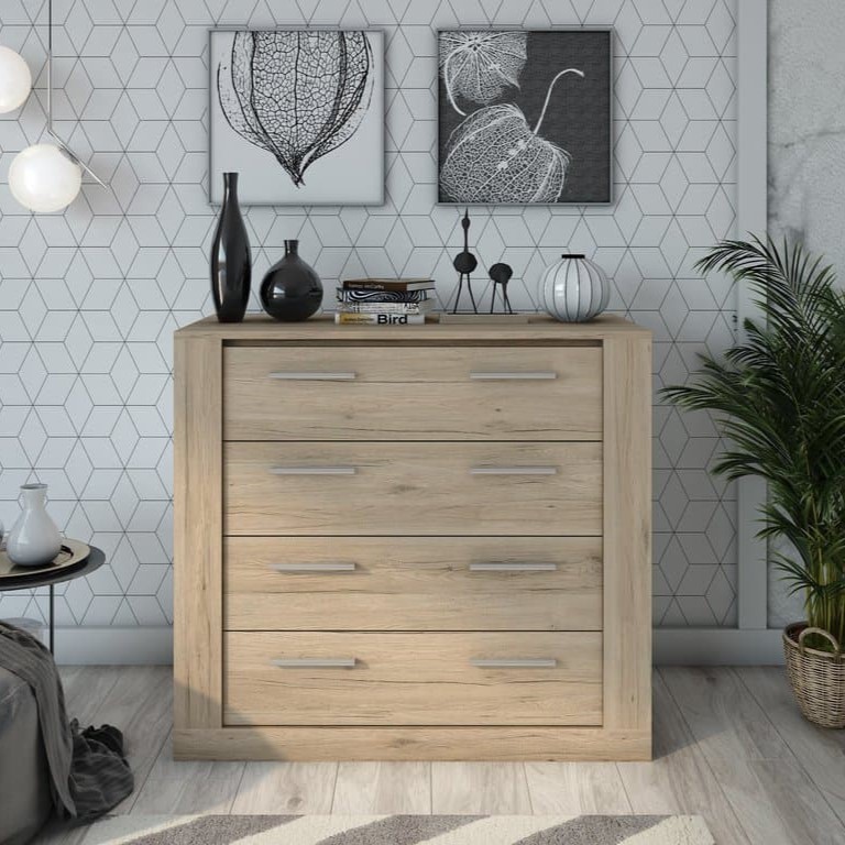 This clean-cut chest of drawers will give any room a contemporary touch and provide extra storage space. Made from high-quality 16mm laminated board, it features four spacious drawers, sleek handles and soft closing hinges. Thanks to its functional and modern design, this chest is easy to match with any interior decor.