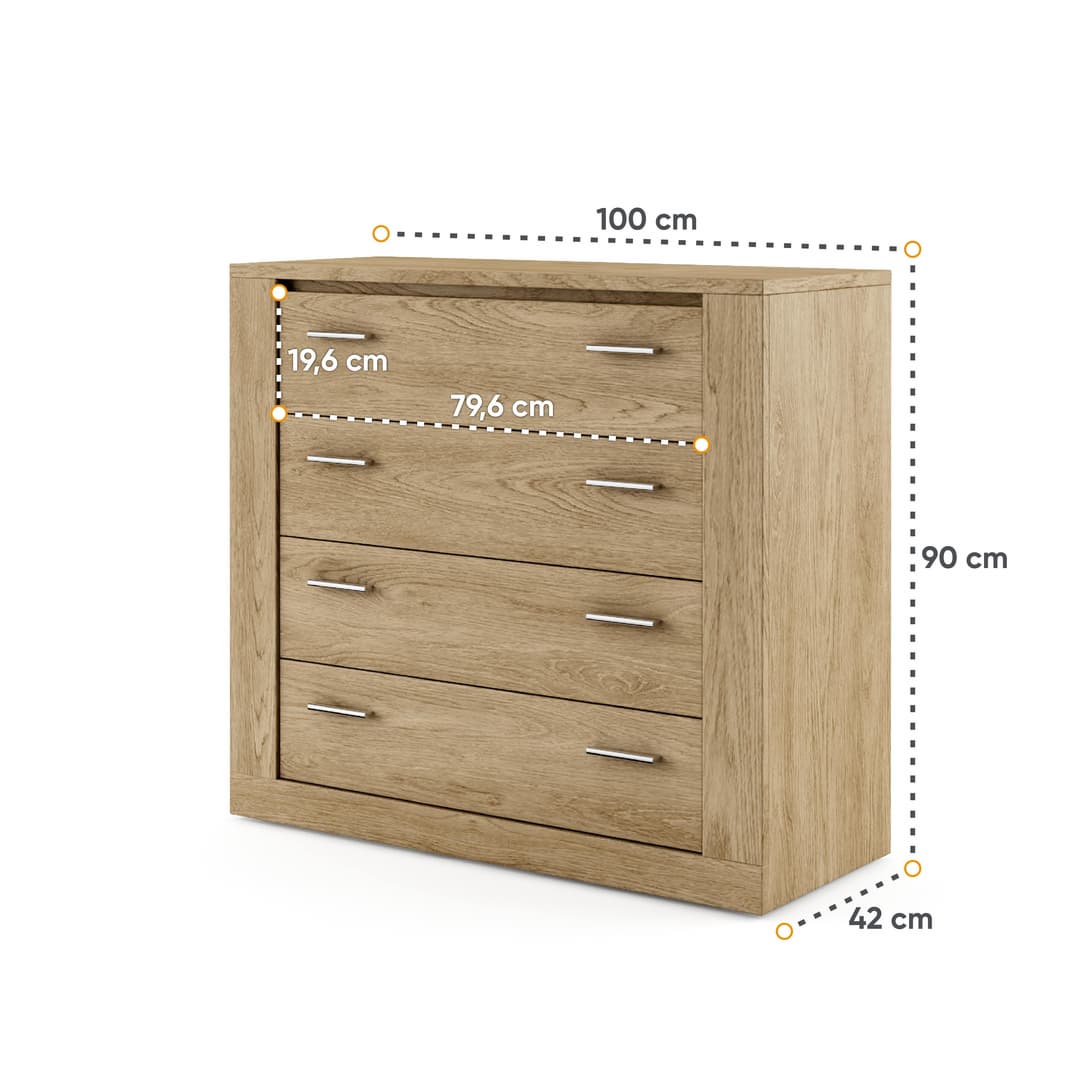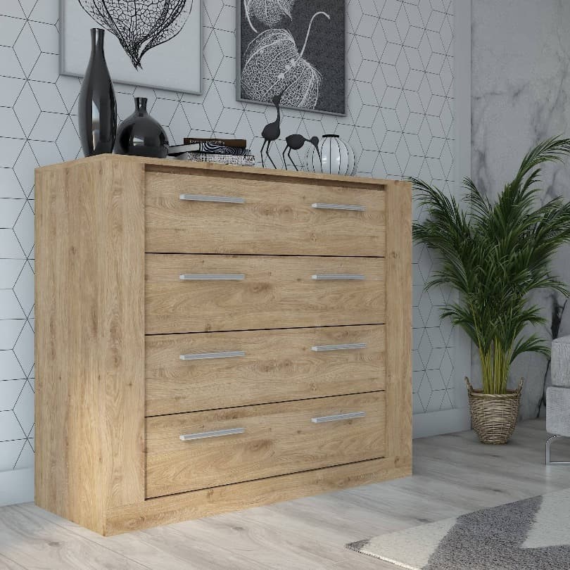 This clean-cut chest of drawers will give any room a contemporary touch and provide extra storage space. Made from high-quality 16mm laminated board, it features four spacious drawers, sleek handles and soft closing hinges. Thanks to its functional and modern design, this chest is easy to match with any interior decor.