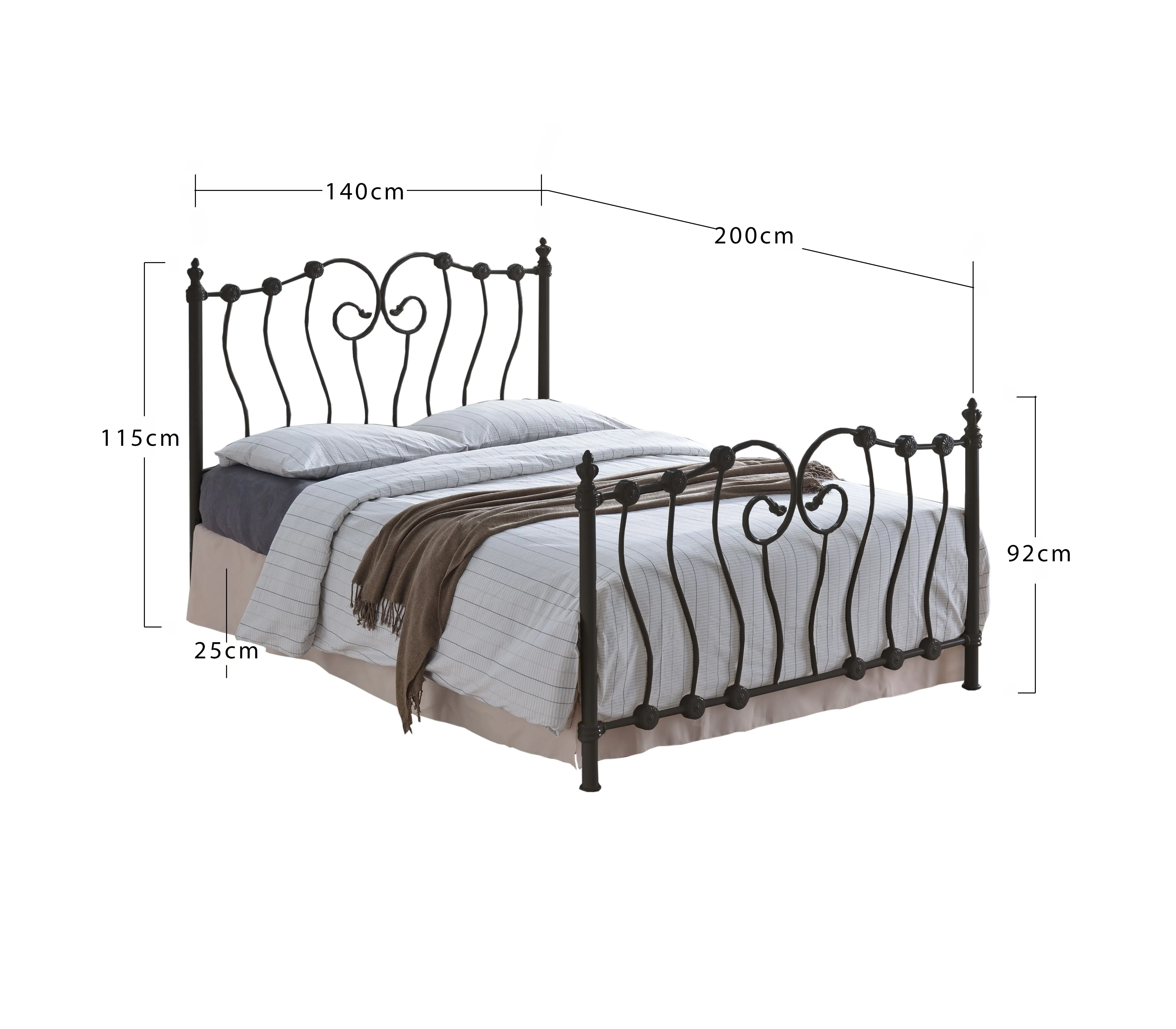 Victorian style metal bed frame is finished in ivory with decorative finials. Sprung slatted base.