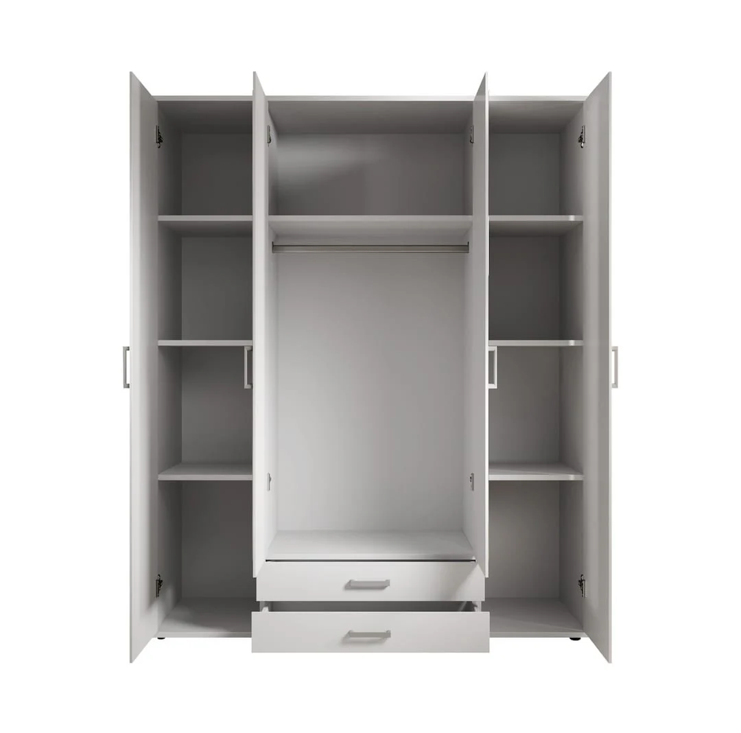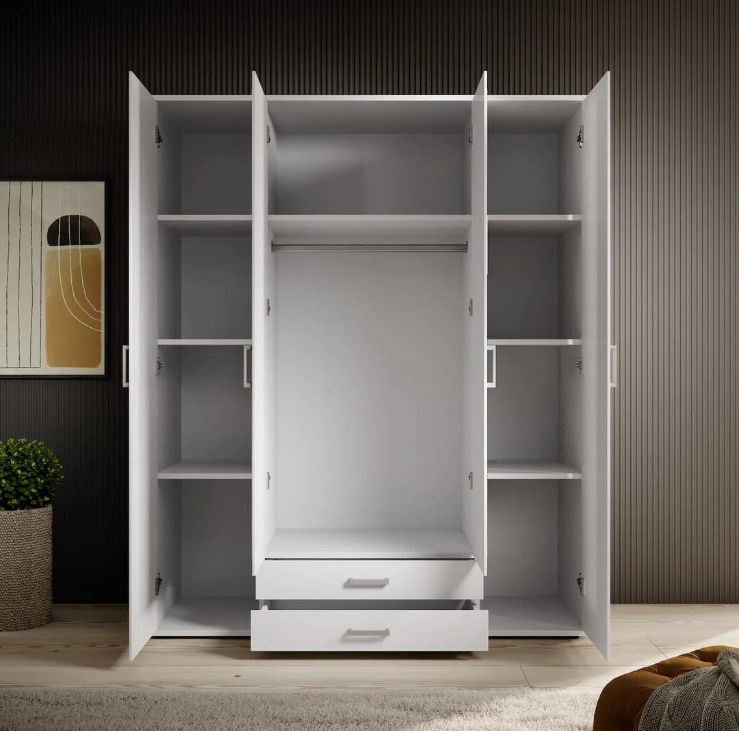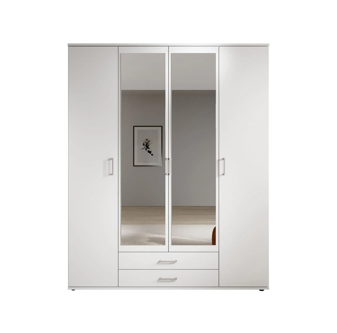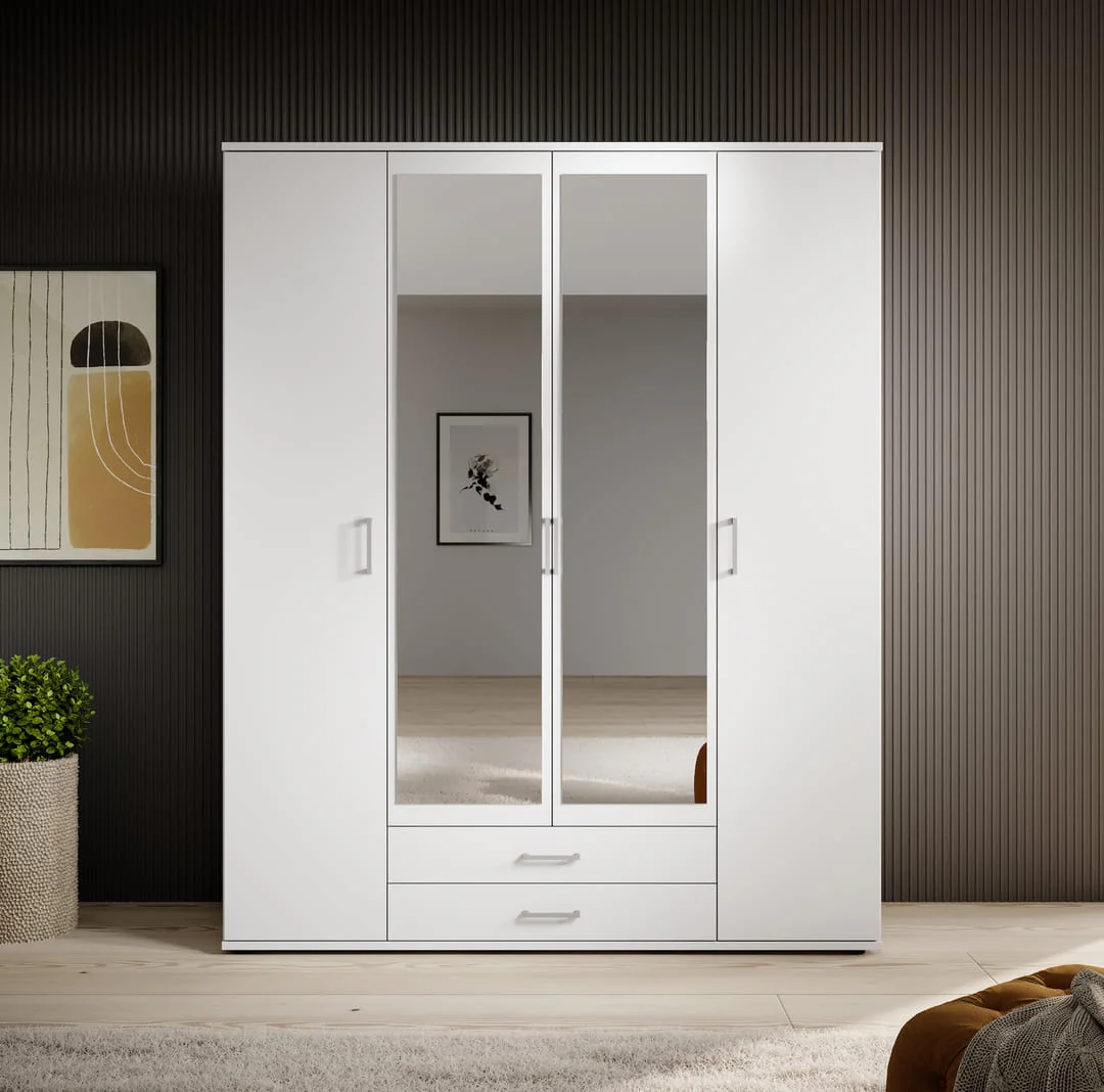 Karl Hinged Door Wardrobe White – 160 cm Wide with Mirrors & Storage
