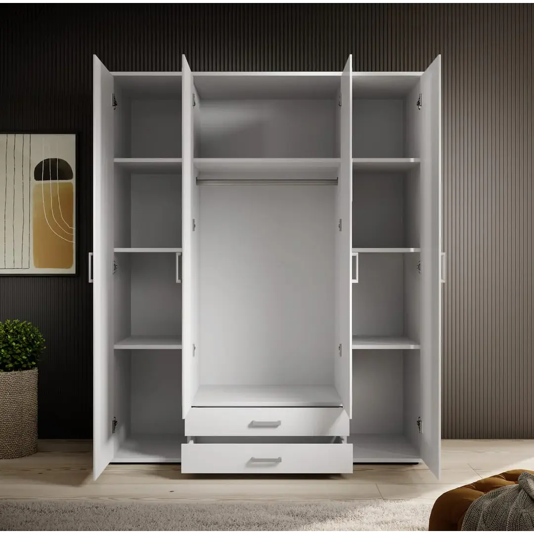 The Karl Hinged Door Wardrobe – 160 cm is a sleek and functional storage solution for modern bedrooms. With four hinged doors—two of which are mirrored—it combines style and practicality. Inside, you’ll find seven shelves, two drawers, and a hanging rail, all housed in a durable laminated board structure. Available in White or Oak Sonoma finishes, it’s designed to suit a variety of interiors.