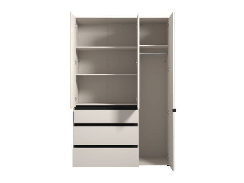 Crafted with attention to detail, this wardrobe features three full-length doors and three spacious drawers that deliver generous storage for your clothing, accessories, and essentials. Inside, a thoughtfully installed hanging rail along with internal shelves ensures your garments remain perfectly organized. The integrated built-in mirror not only heightens room brightness but also adds an extra layer of convenience to your daily routine.
