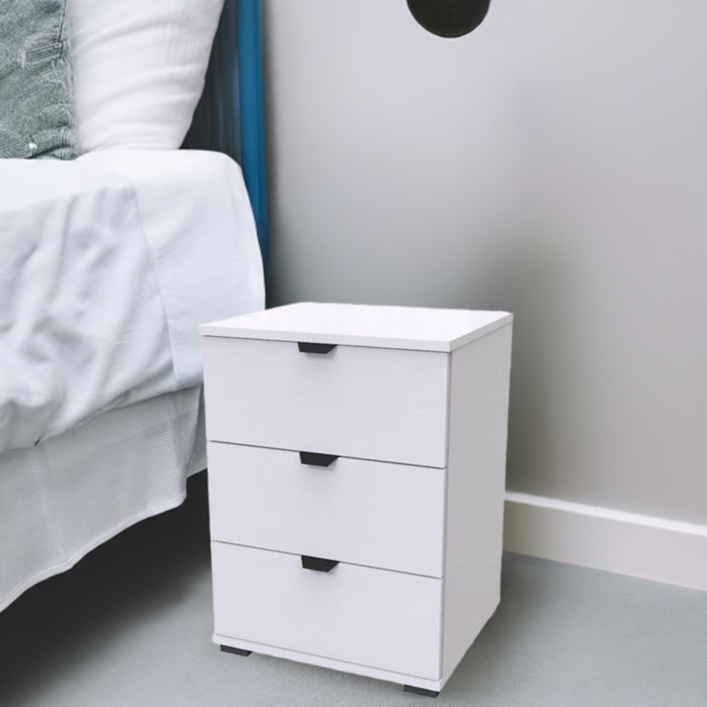 Enhance your sleeping space with the Kinross Arctic White 3 Drawer Bedside Table, a perfect blend of contemporary design and practical utility. Its crisp, clean Arctic White matte finish brightens any room, making it an ideal choice for modern, minimalist, or Scandi-inspired interiors.