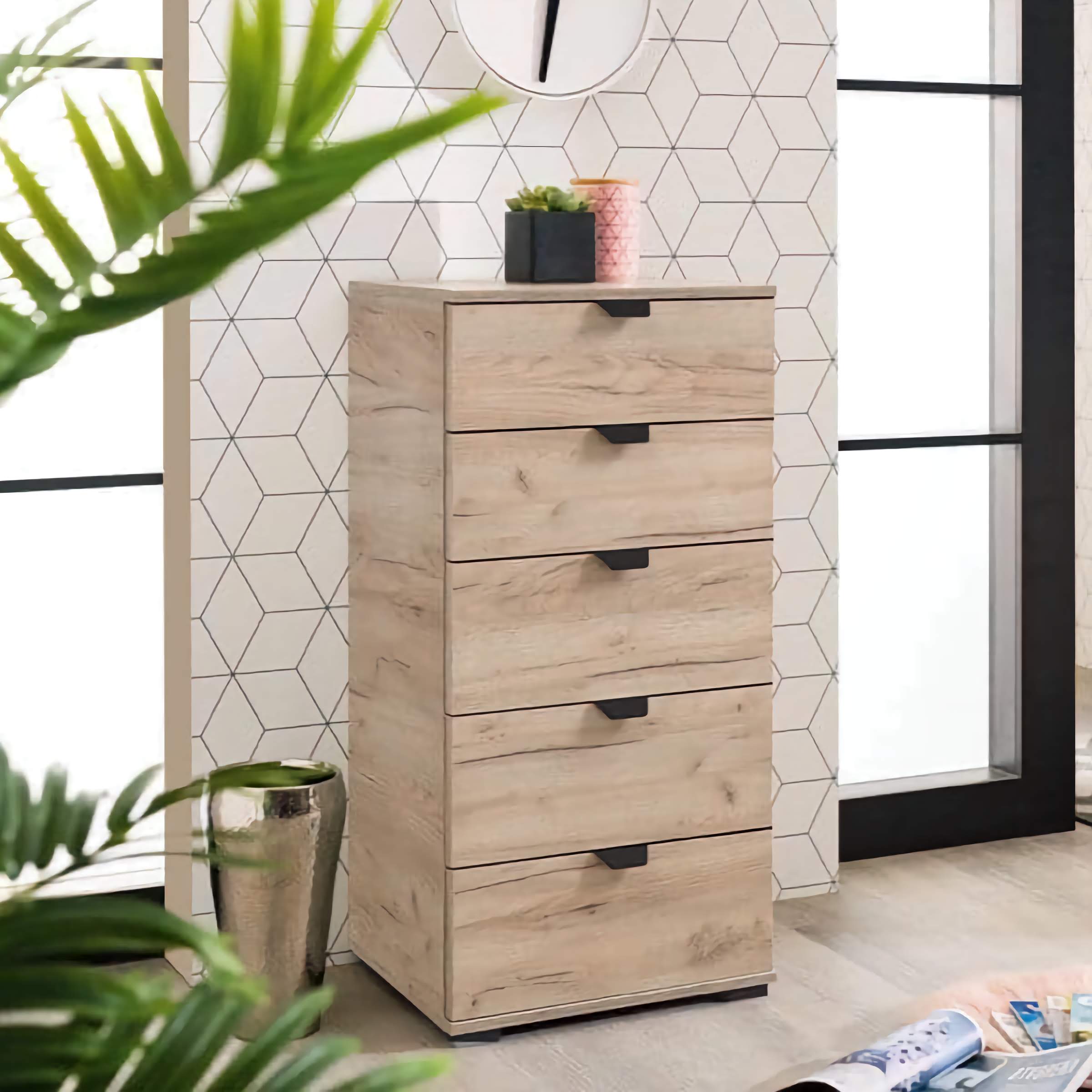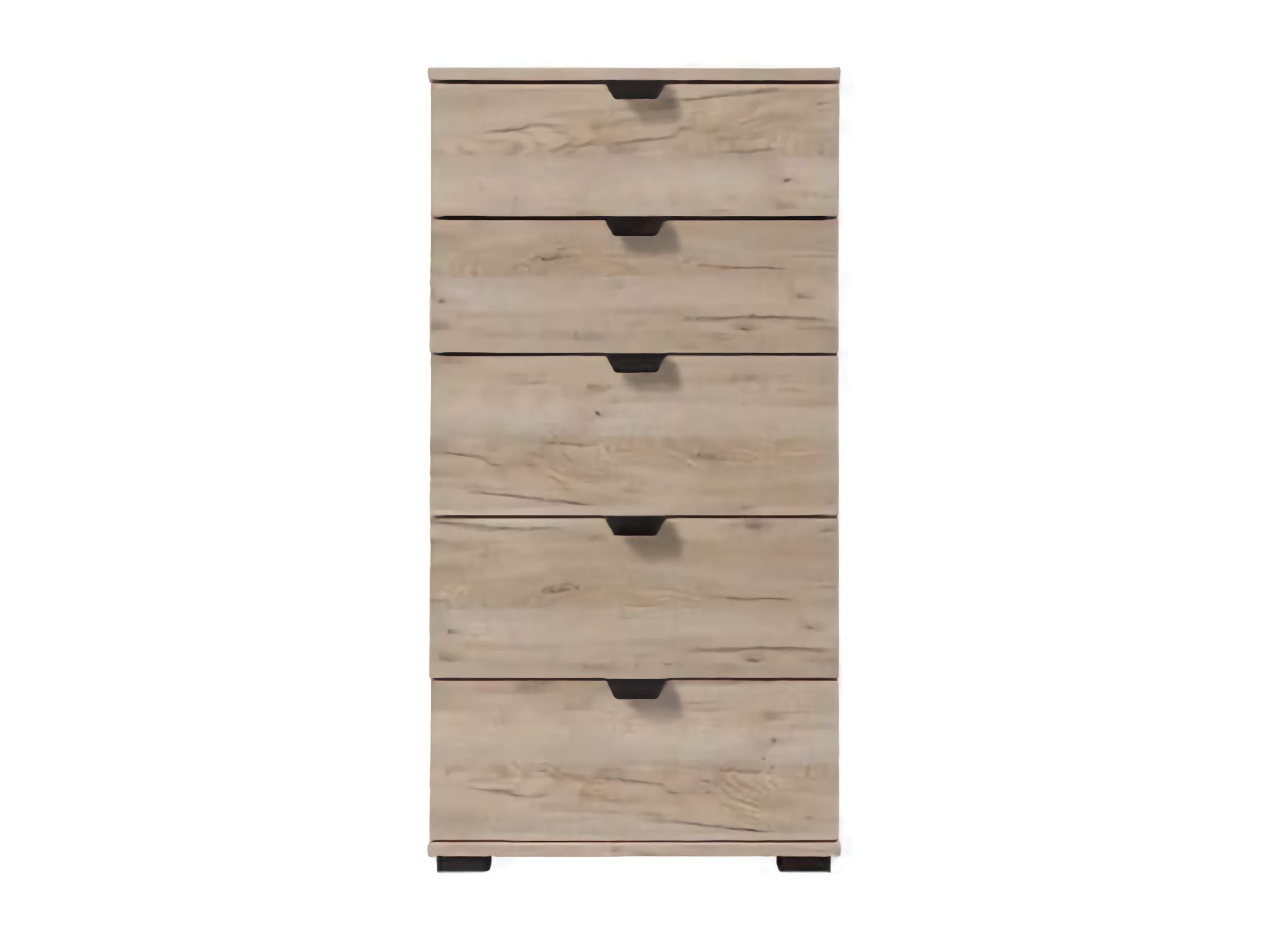 The Kinross Oak Effect Narrow 5 Drawer Chest offers a sleek and compact storage solution for smaller spaces. Finished in crisp oak effect, it features five vertically stacked drawers, perfect for organising essentials. Its minimalist design adds a touch of modern elegance to any room.