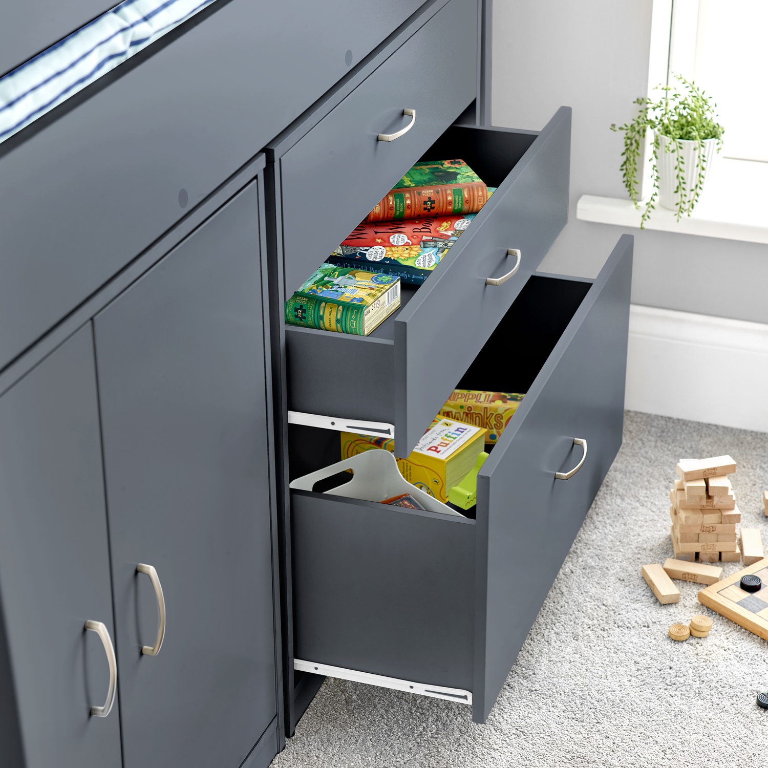 Lacy Grey Storage Mid Sleeper Bed – Single | Smart Storage & Reversible Ladder