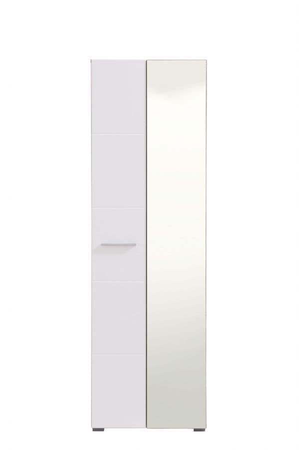 This wardrobe features a gloss white front paired with a sleek mirrored panel, creating a clean and contemporary look. The reflective surface helps small rooms feel larger, while the minimalist design blends effortlessly with modern décor styles. Its narrow profile makes it ideal for tight spaces, hallways, guest rooms, or box rooms.