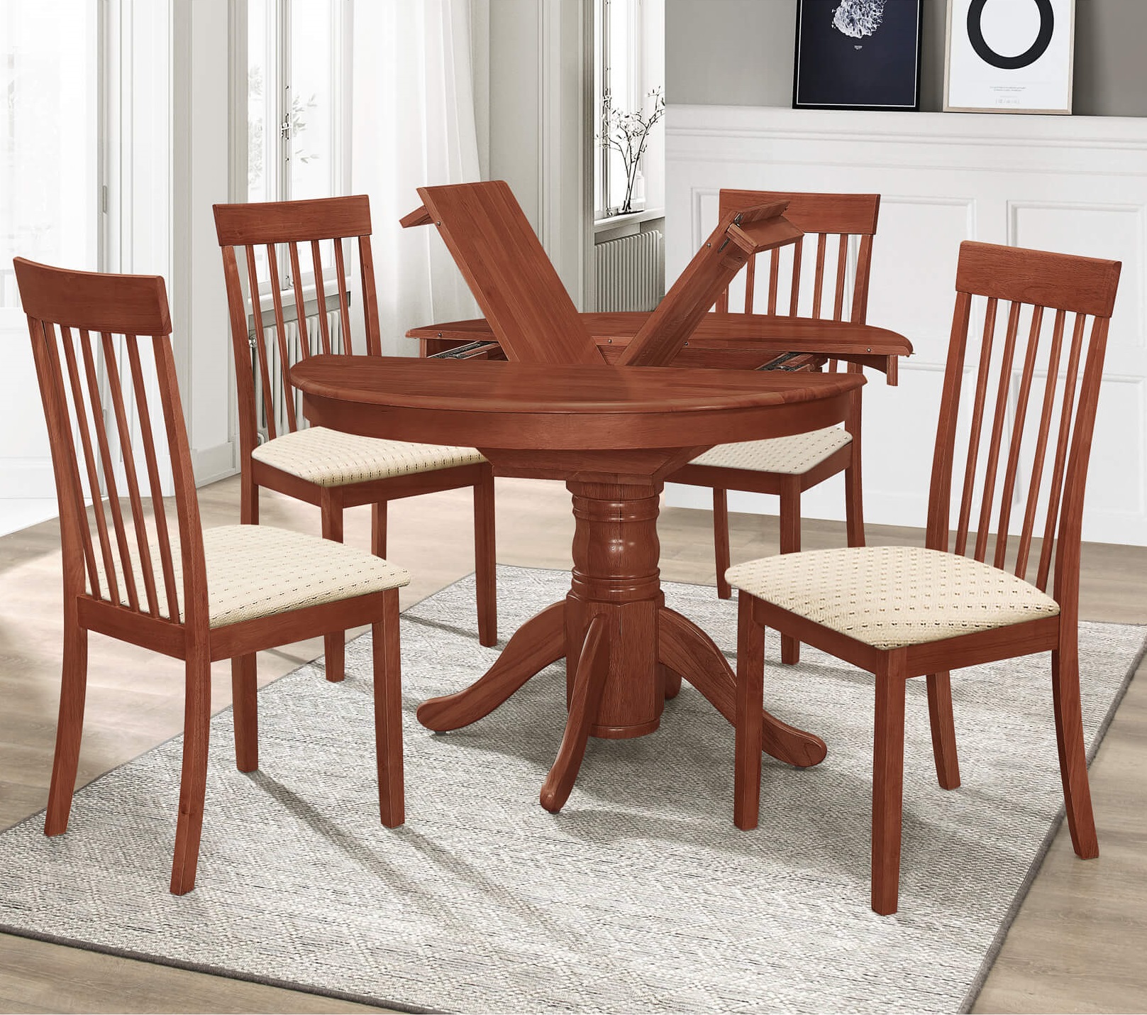 Details about Leicester Dining Set with 4 Chairs Mahogany