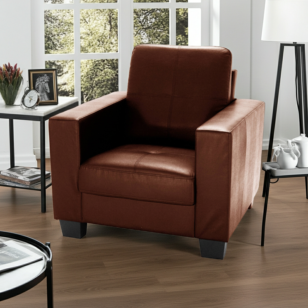 Lena 1 Seater Sofa – Brown Bonded Leather & PVC | Sleek Compact Living Room Chair