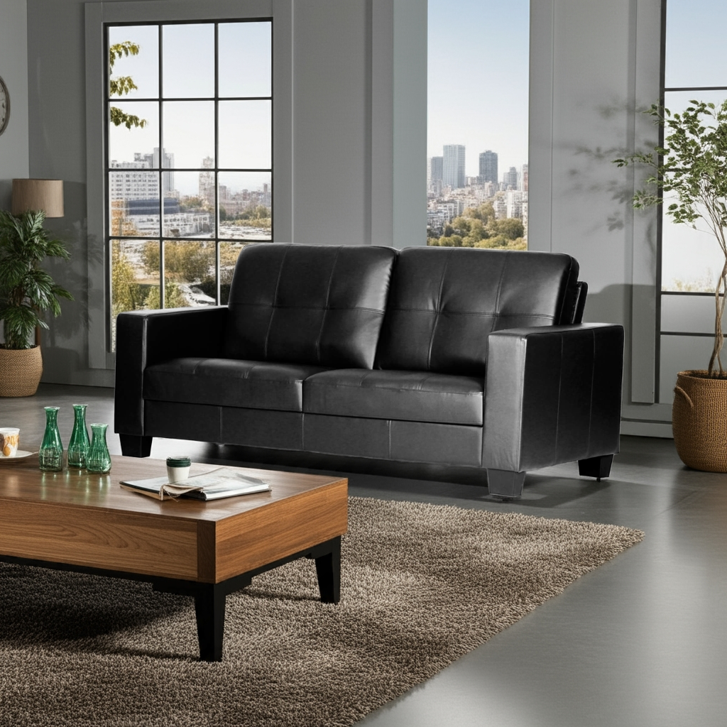The Lena Bonded Leather & PVC 3 Seater Sofa – Black combines timeless design with everyday comfort. Upholstered in smooth bonded leather and PVC, it’s perfect for larger living rooms, family spaces, or office lounges.