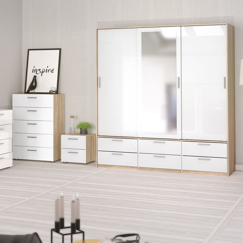 Details about Line Wardrobe 3 Doors 6 Drawers