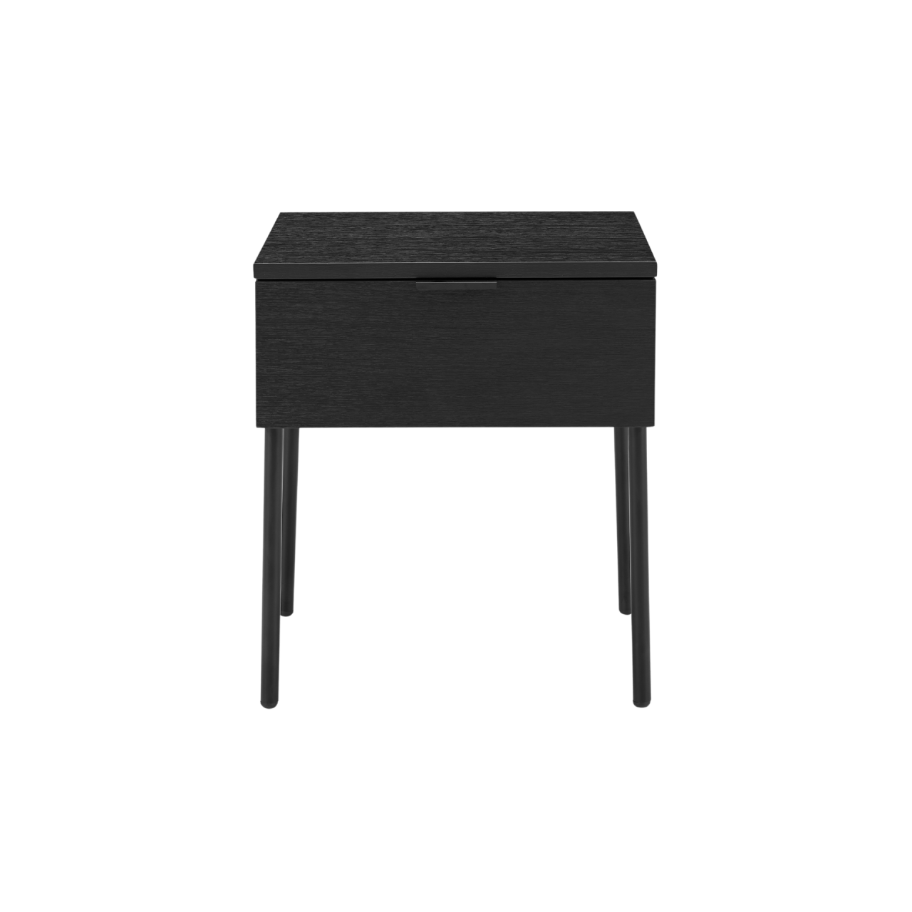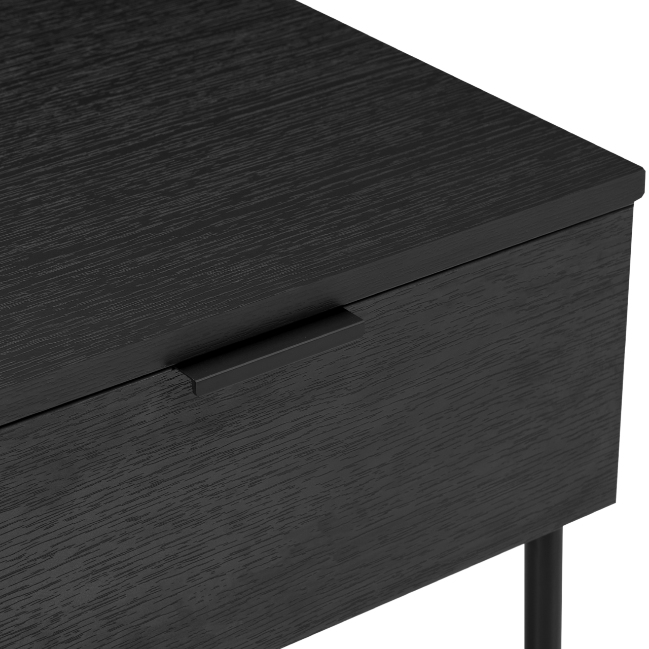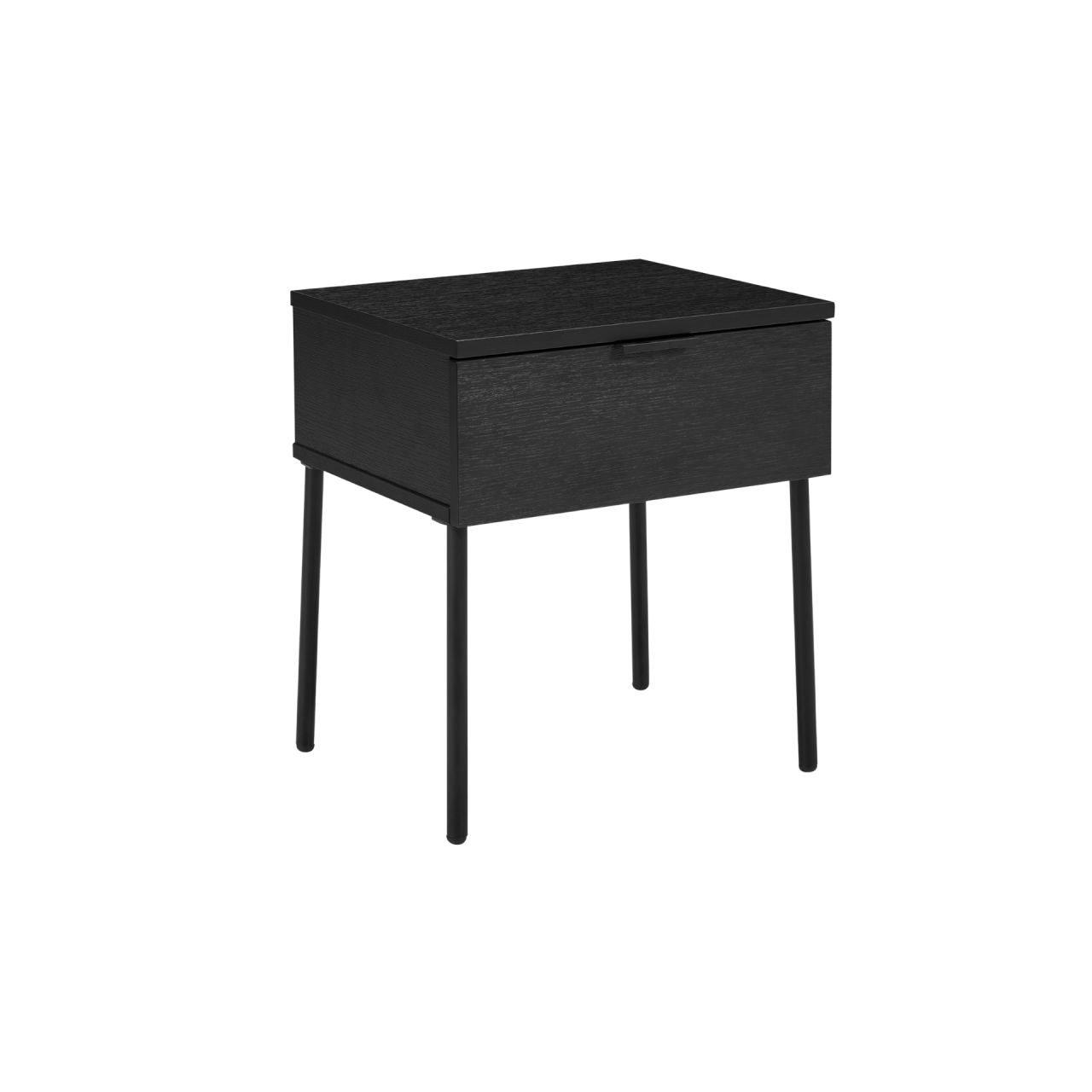 Built for long‑term performance, the drawer operates on ball‑bearing runners, ensuring smooth and reliable opening and closing. The bedside stands on 1.2mm thick round steel legs with plastic floor protection, offering stability while preventing marks on hard flooring. The combination of wood‑effect surfaces and black powder‑coated metal accents gives the piece a modern, balanced aesthetic.