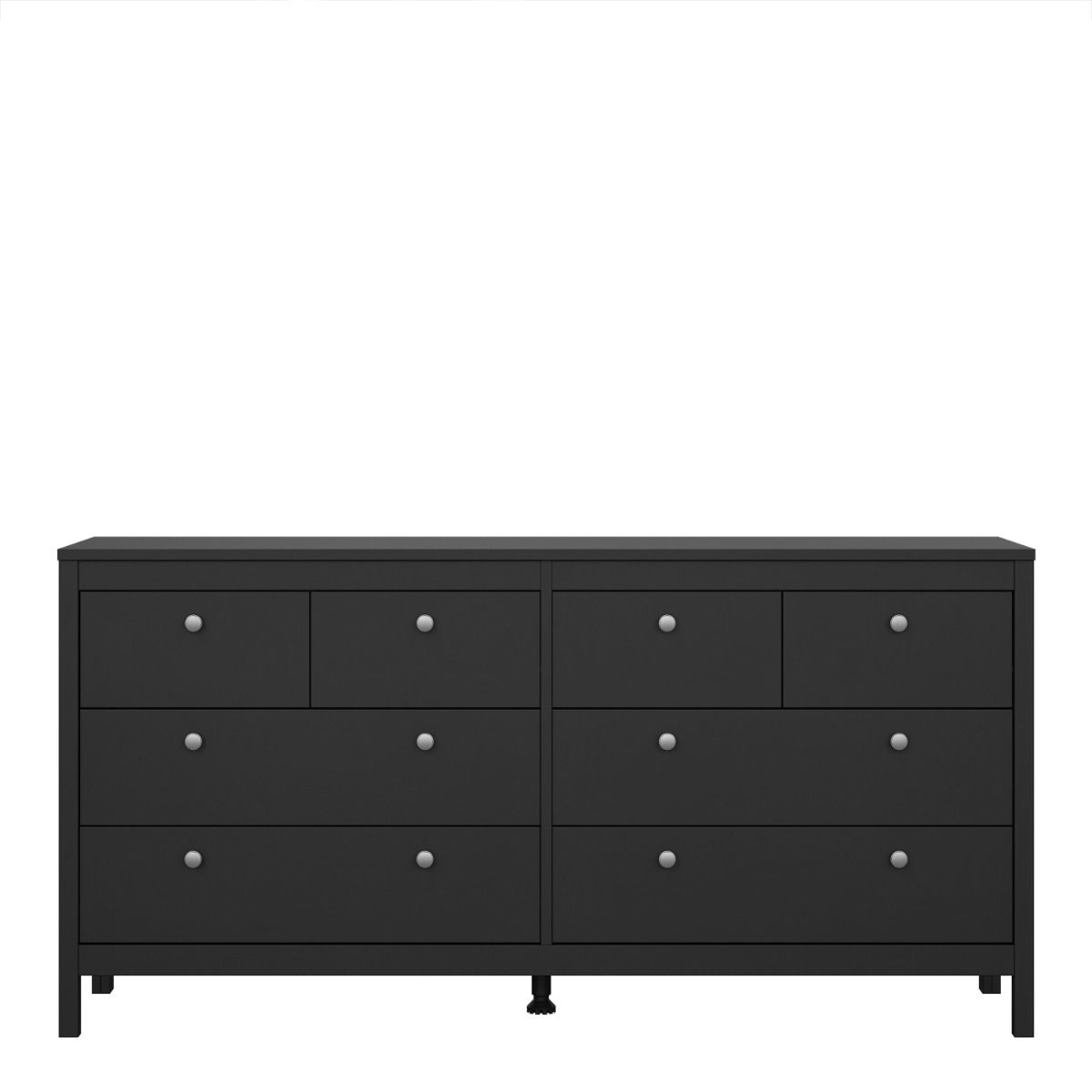 A contemporary chest of drawers in an elegant design complete with a simple metal handle, also available in white