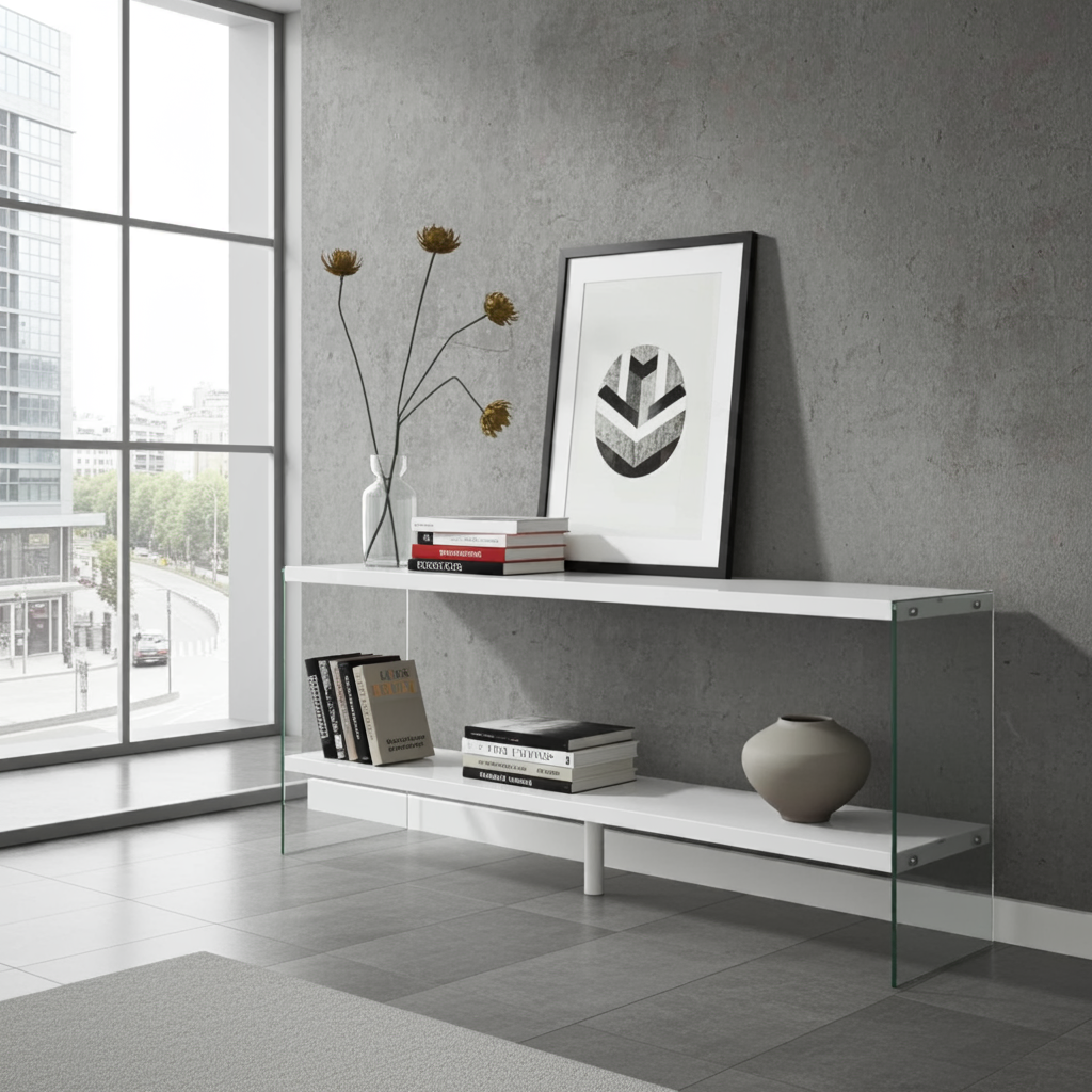 The Marco White High Gloss & Glass Sideboard is a contemporary statement piece designed to enhance modern interiors. With a clean white high gloss finish and a tempered glass top, it offers both elegance and practicality. Measuring 1800 mm wide, it provides ample surface and internal storage space for tableware, décor, or everyday essentials. Ideal for minimalist, monochrome, or glam-inspired spaces, this sideboard blends sleek aesthetics with functional design.