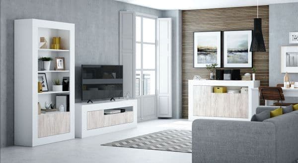 The stylish Marlow TV unit in white with wood effect. This unit features 2 doors and 1 open shelving compartment.