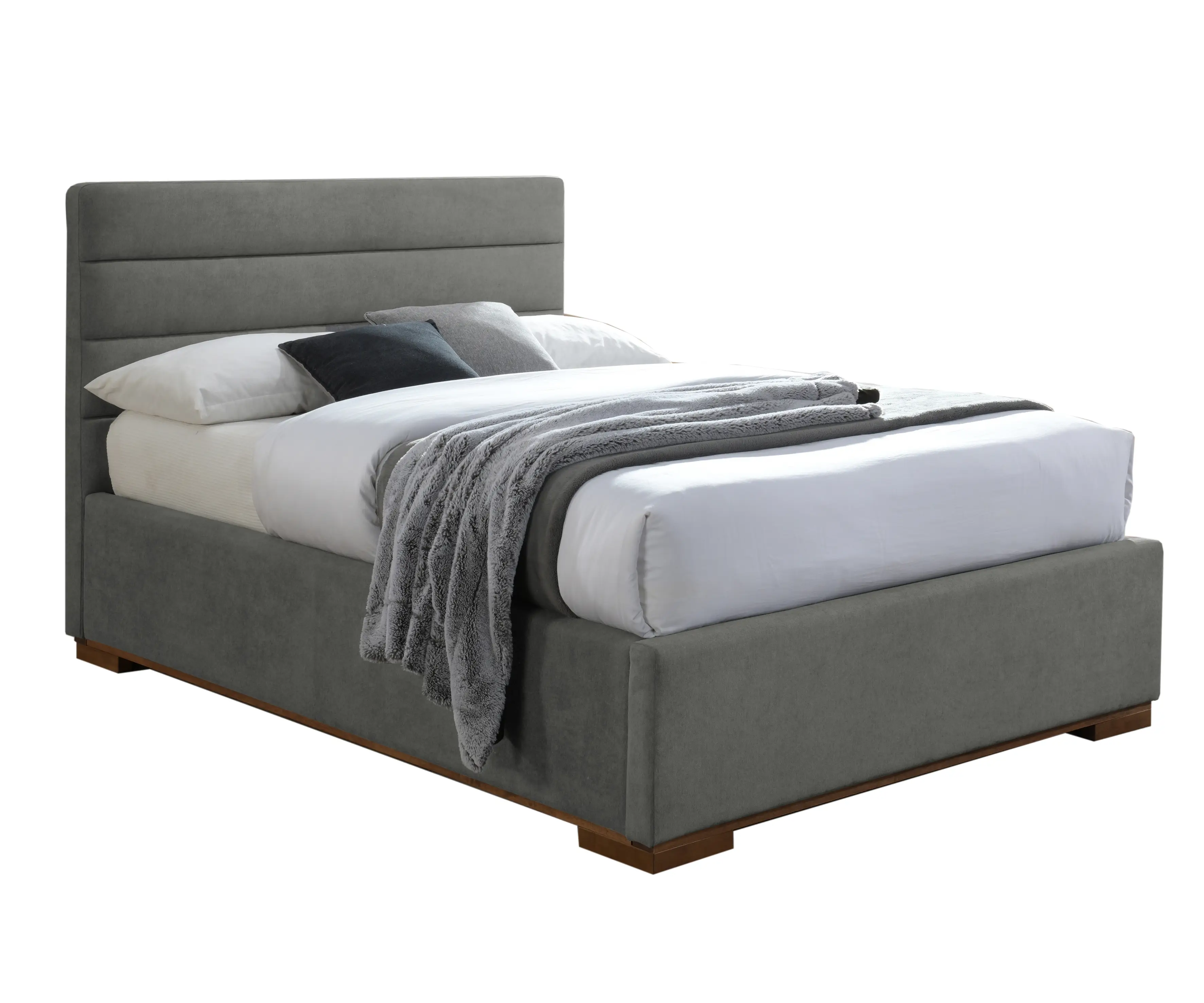 This modern bed combines style and functionality with its sleek design and spacious storage ottoman.