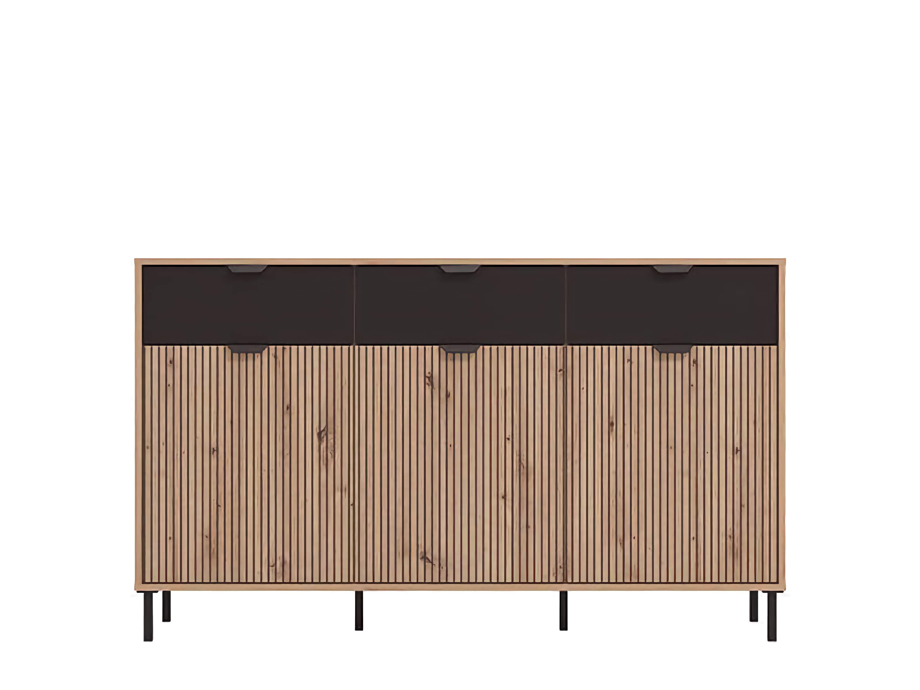 Mere Artisan Oak Effect Slatted & Black 3 Door Sideboard | Stylish Modern Storage Unit