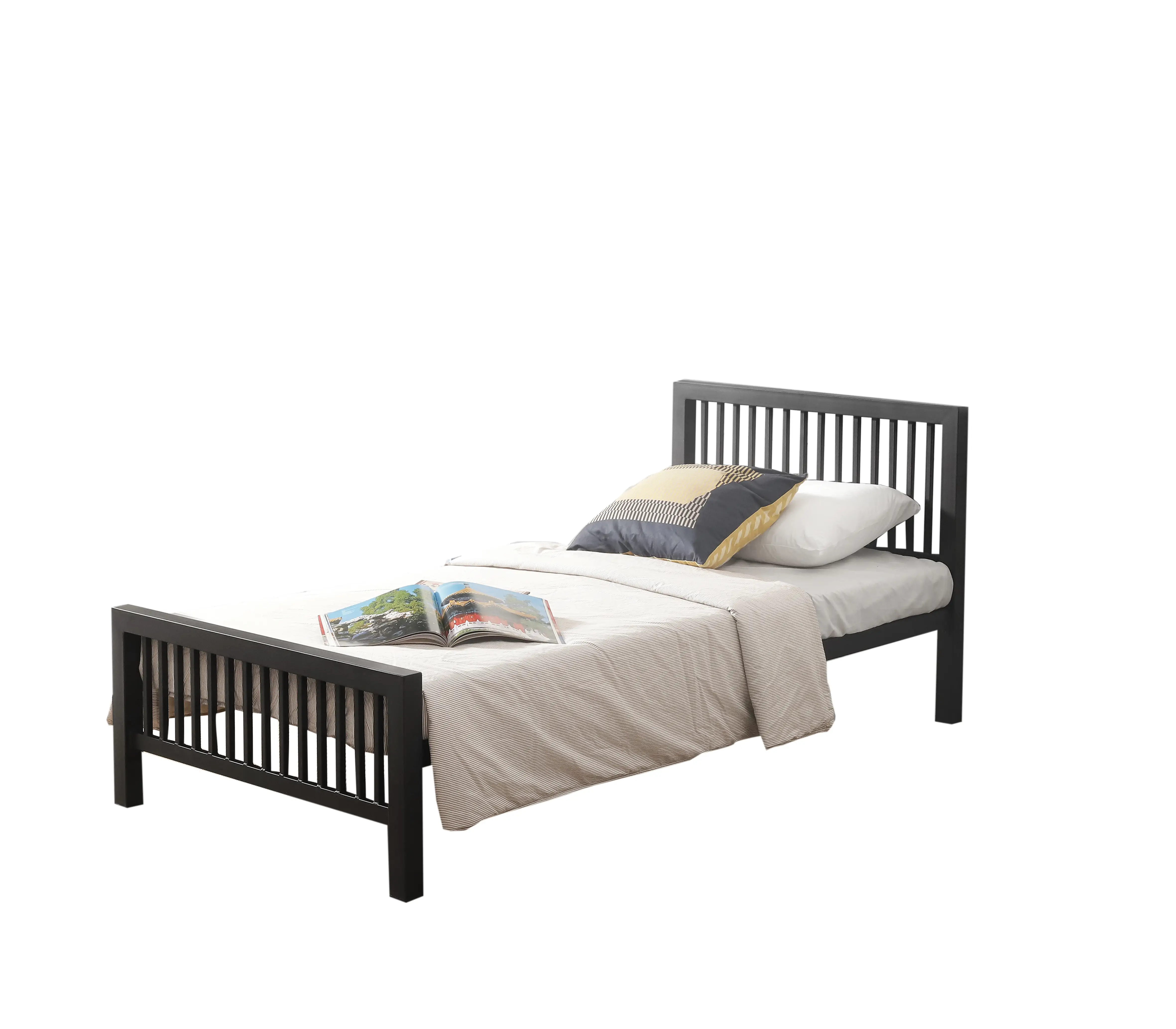 Modern Bedframe with straight edges finished in black, Sprung slatted base. No centre support legs.