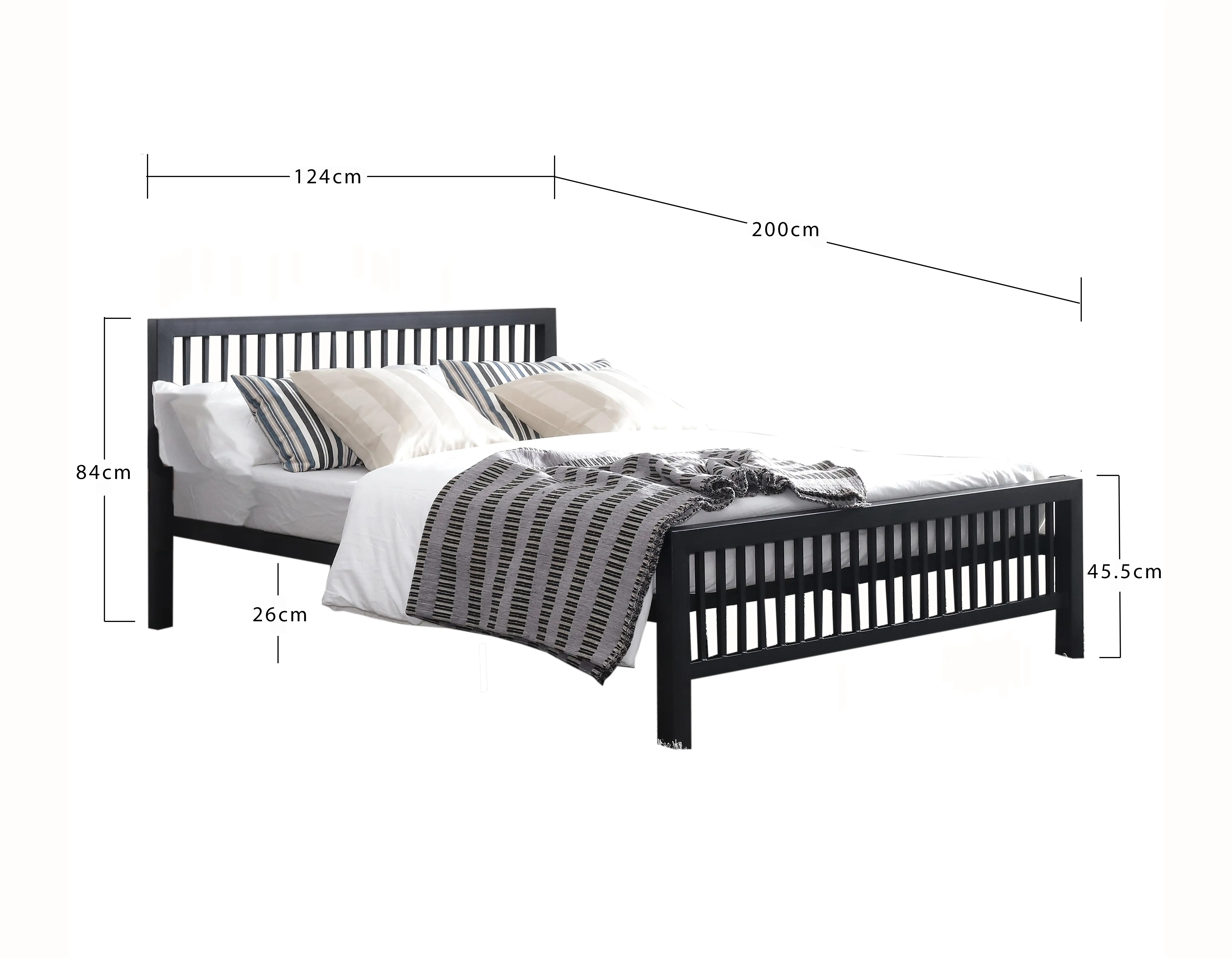 Modern Bedframe with straight edges finished in black, Sprung slatted base. No centre support legs.