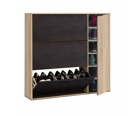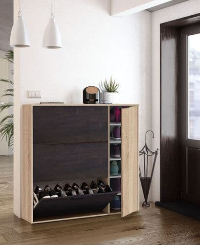 Moreton Oak Effect and Oxido Dark Brown Shoe Cabinet with 4 Doors