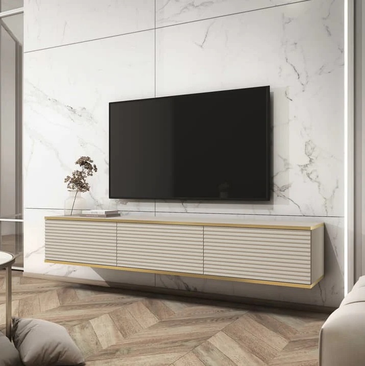 Moro Floating TV Cabinet – Beige Finish with Rippled Fronts – 175 cm Wide