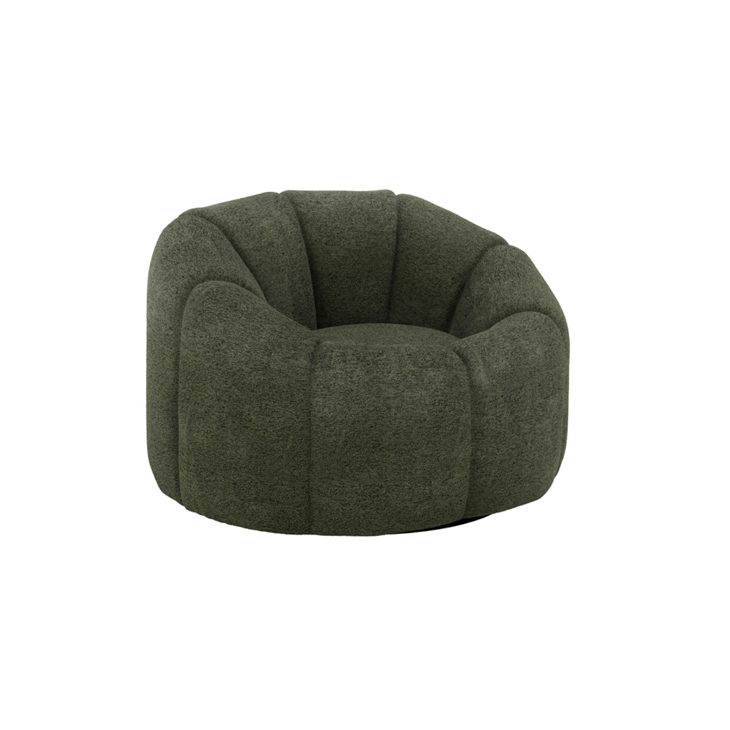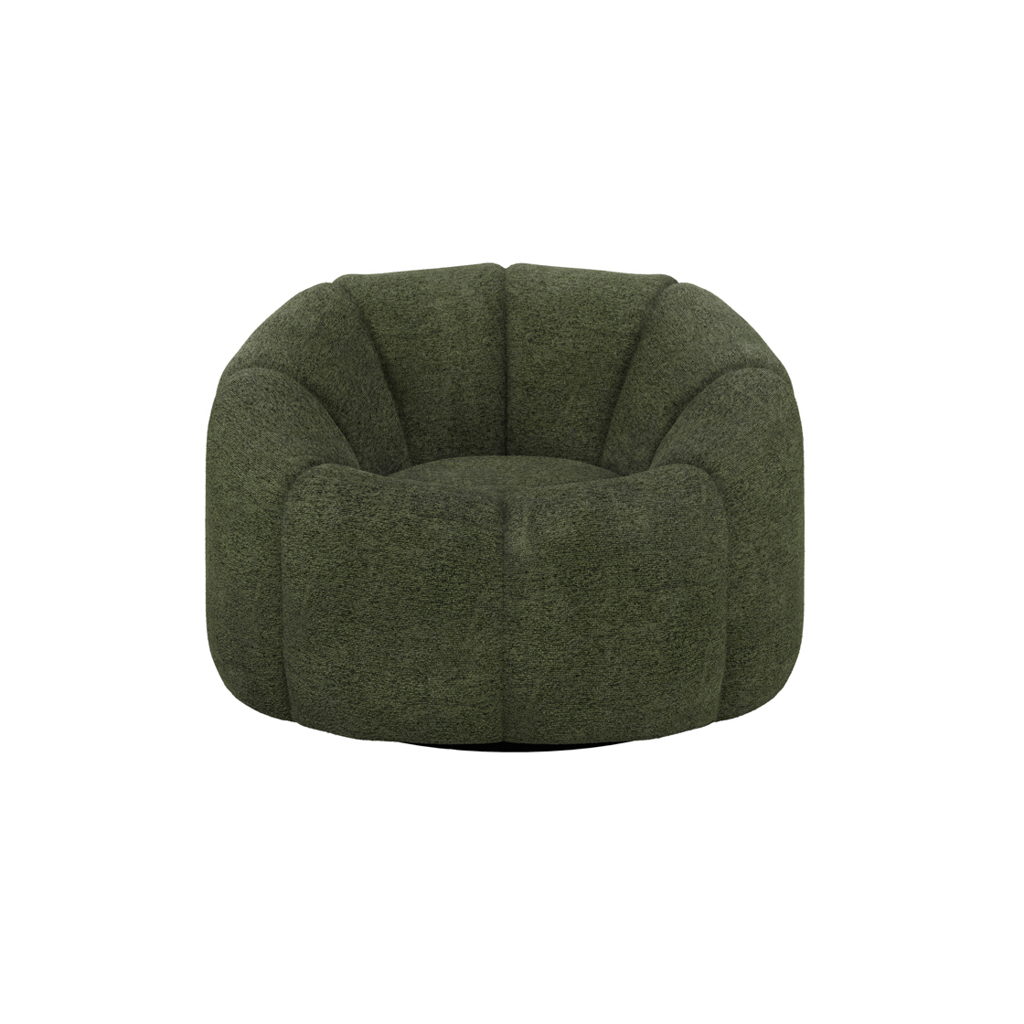 Nao Swivel Chair in Basil Bouclé with Contemporary Swivel Base