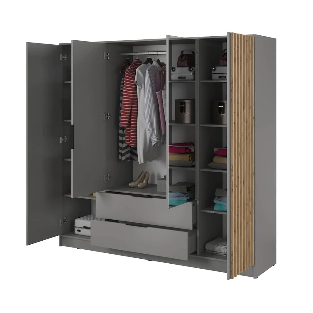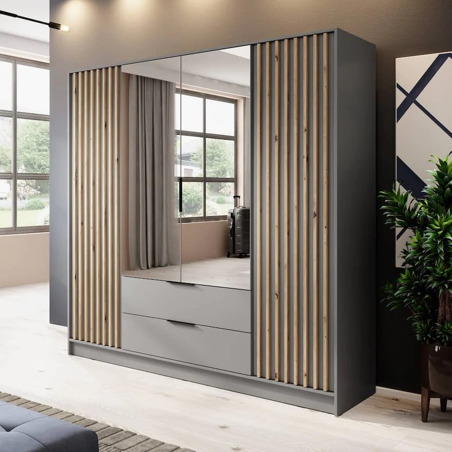 Details about Nelly Hinged Mirror Door Wardrobe 206cm Grey