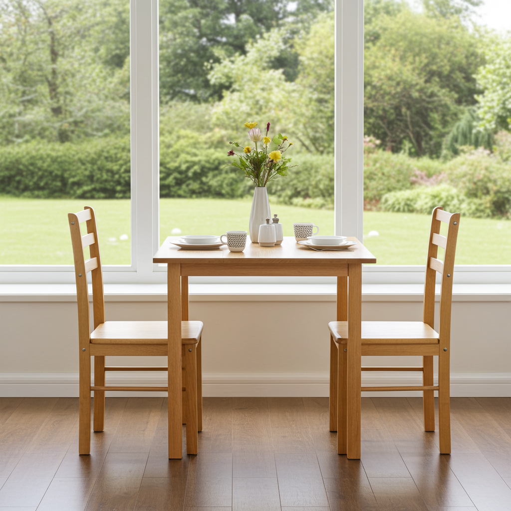New York Small Dining Set with 2 Chairs – Natural Oak | Compact Solid Rubberwood Dining Furniture