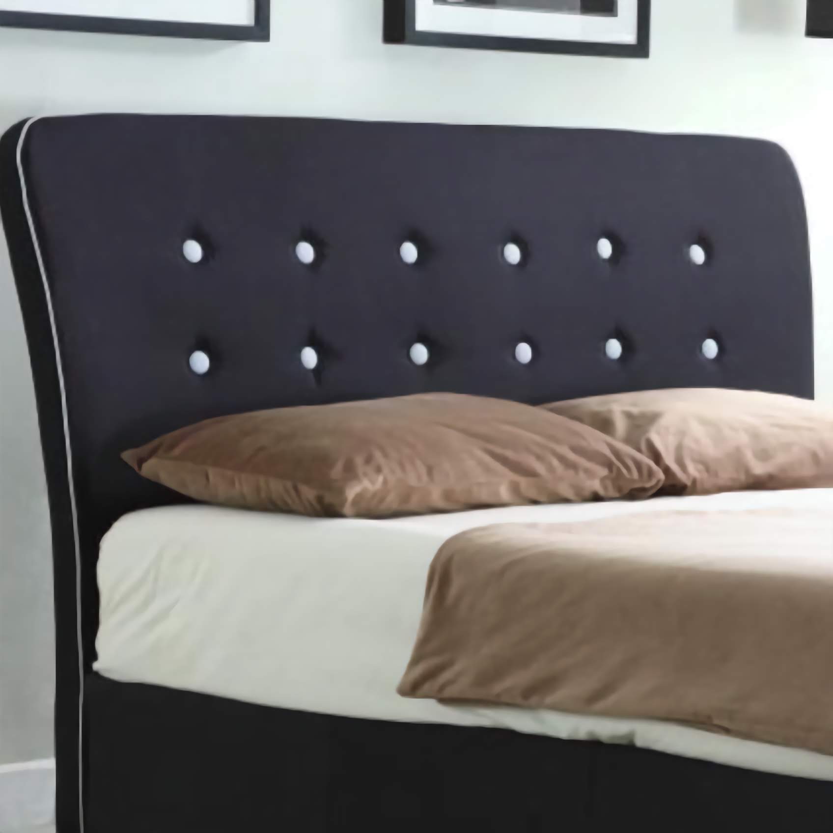 Details about Black Linen King Size Bed with White Piping