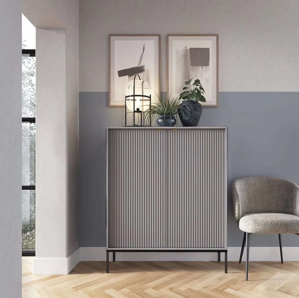 The Nova highboard cabinet is modern, functional and exceptionally well-built. Featuring two hinged doors and four shelves, it has space to hide away clutter and keep everything neat and tidy. Its grooved fronts create an artistic touch that works perfectly in both contemporary as well as modern settings. This cabinet is made from 16mm laminated board and reinforced with ABS edging for maximum strength and durability.