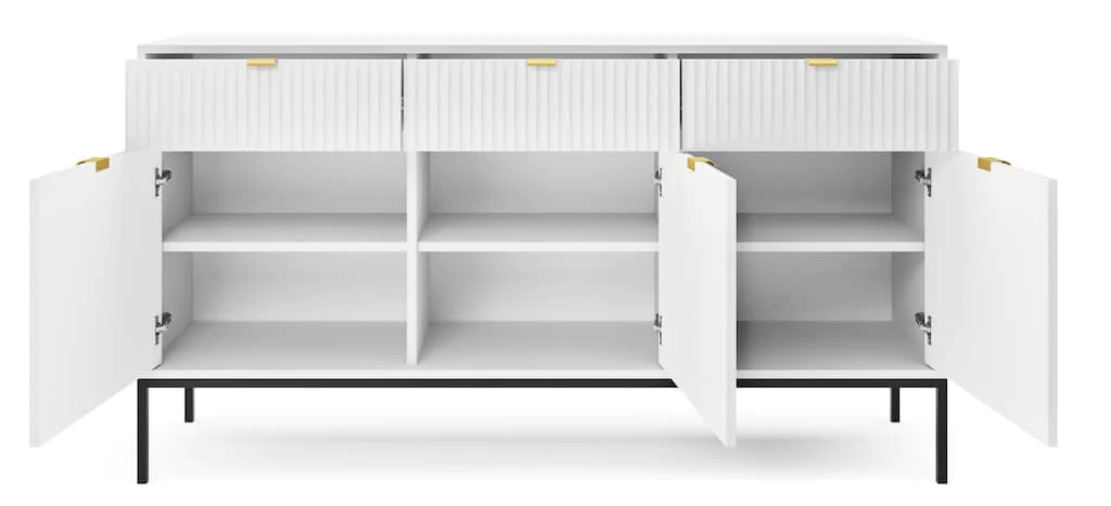 Nova is a modern and stylish sideboard cabinet that will help organize your home, while adding some much-needed style. Its multi-functional design features three hinged doors, six closed compartments and a trio of drawers that provides plenty of storage space for all your valuables. This sideboard is made from high-quality 16mm laminated board and reinforced with ABS edging for abrasion-resistance and long-lasting durability.