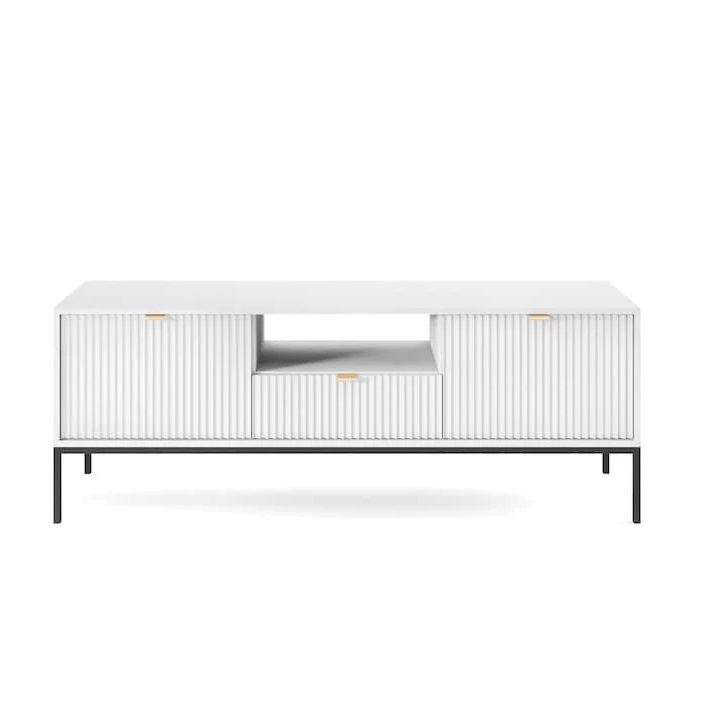 Nova is the perfect TV cabinet that can easily fit in any modern or contemporary space. It features two hinged doors, one drawer and one open compartment for storage. Available in three colour schemes with black metal legs, it will effortlessly blend in any decor. Made from 16mm laminated board and reinforced with ABS edging, the Nova TV cabinet will be a great addition to your living area!
