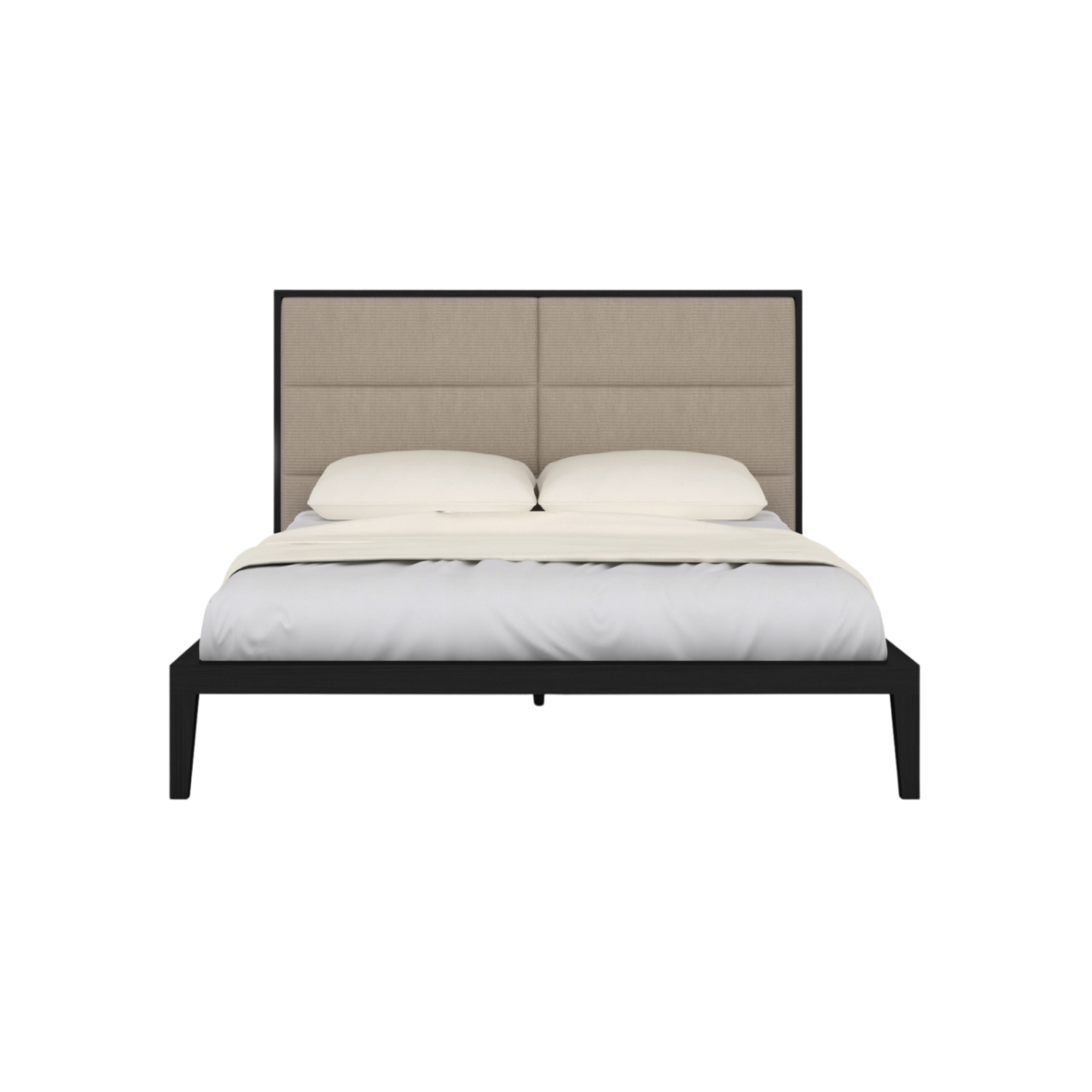 Orchid Wenge Double Bed with Beige Upholstered Headboard